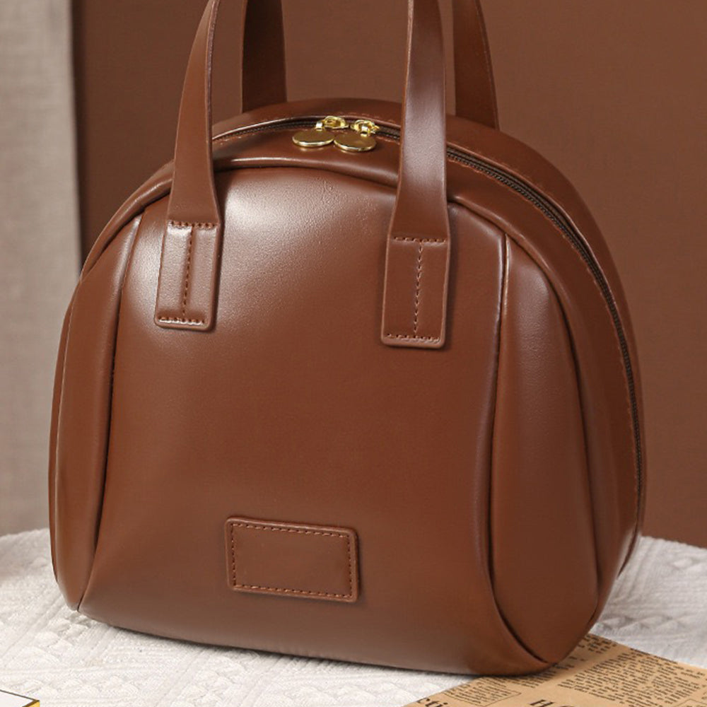 Travel Makeup Bag PU Leather Portable Toiletry Bag Brown