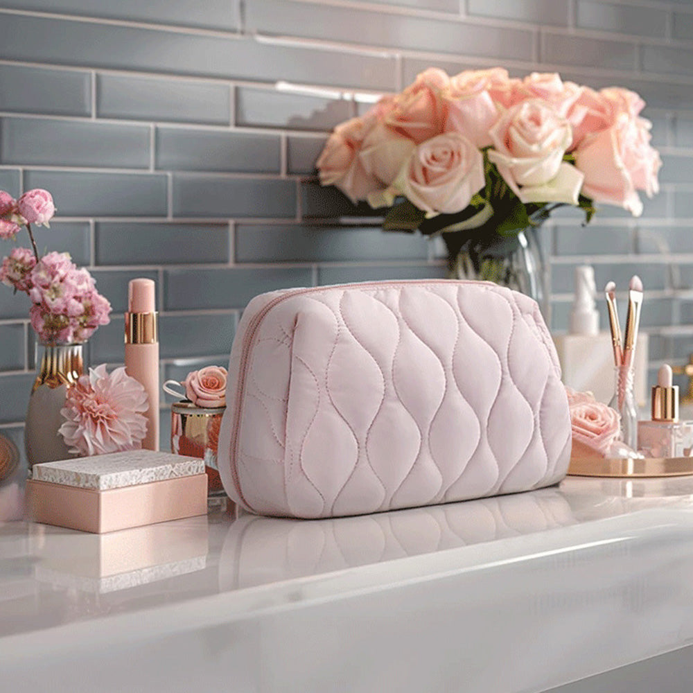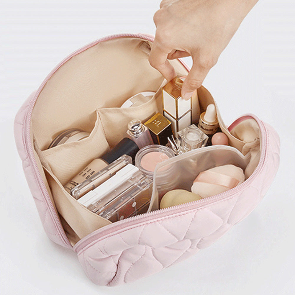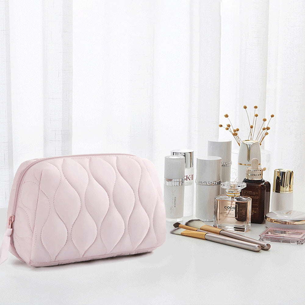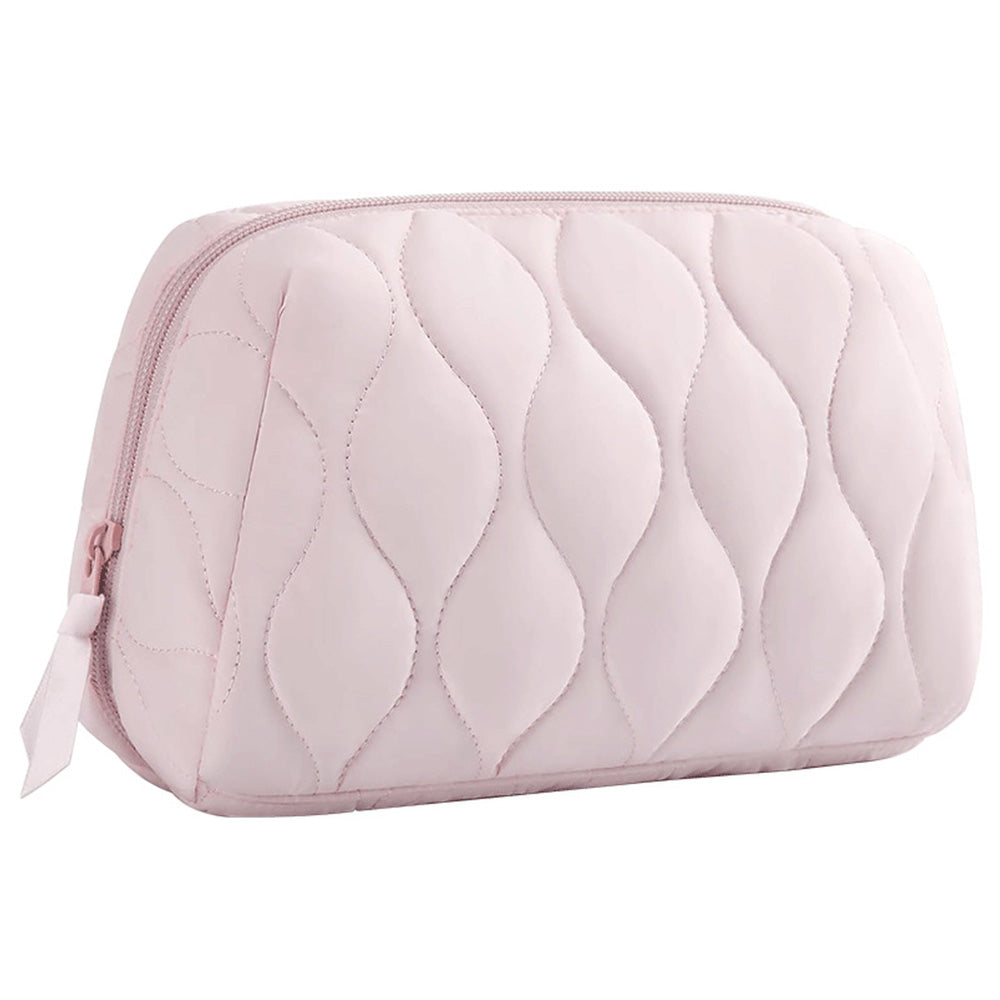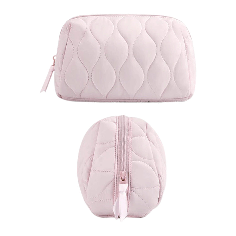 Travel Makeup Bag Puffy Padded Cosmetic Organizer Case Wide Opening Toiletry Pouch Pink