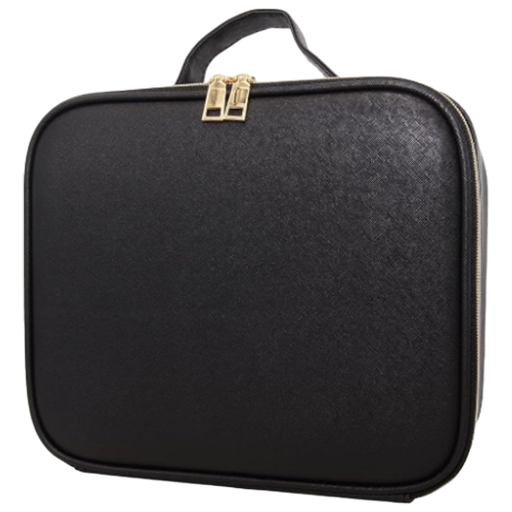 Travel Makeup Bag with Lighted Mirror Cosmetic Train Case with Adjustable Dividers Black