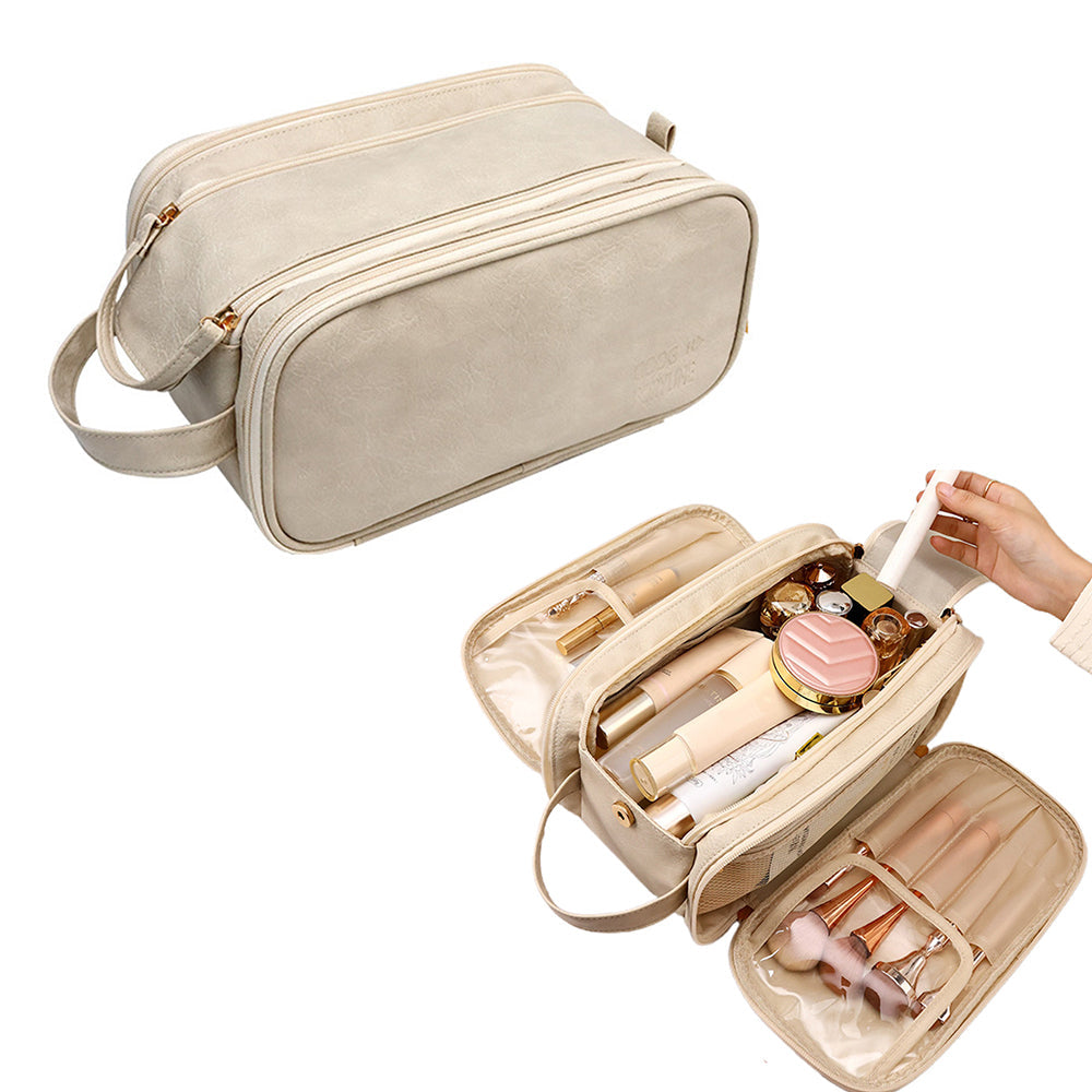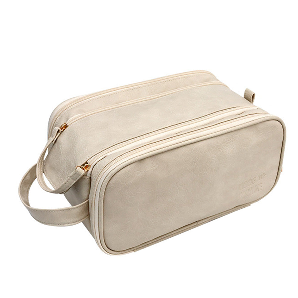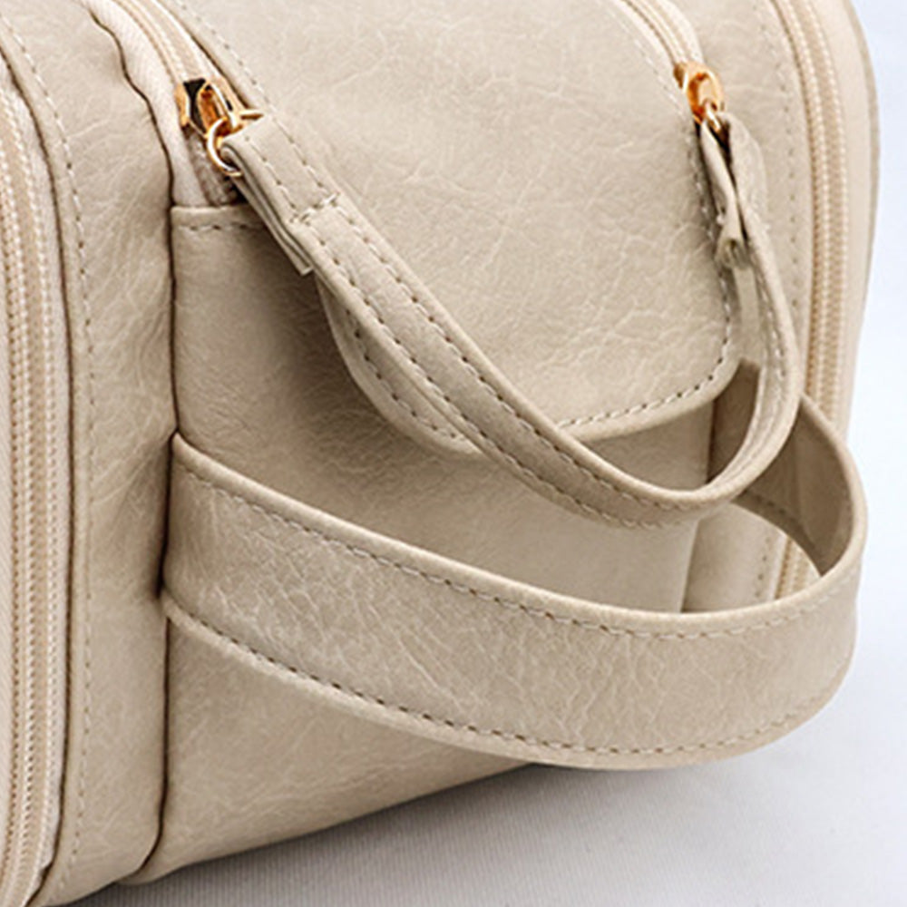 Travel Toiletry Bag Makeup Organizer with Handle Water Resistant Cosmetic Bag Beige
