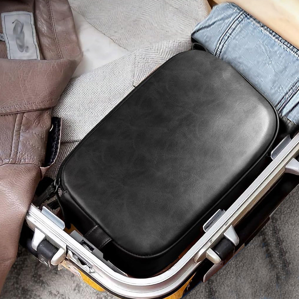 Made from high-quality odor-free TPU and leather materials, this toiletry bag keeps your items dry even in humid environments while preventing unwanted odors. The surface is easy to clean—just wipe it down for a fresh look, making it ideal for bathroom or sink-side use.