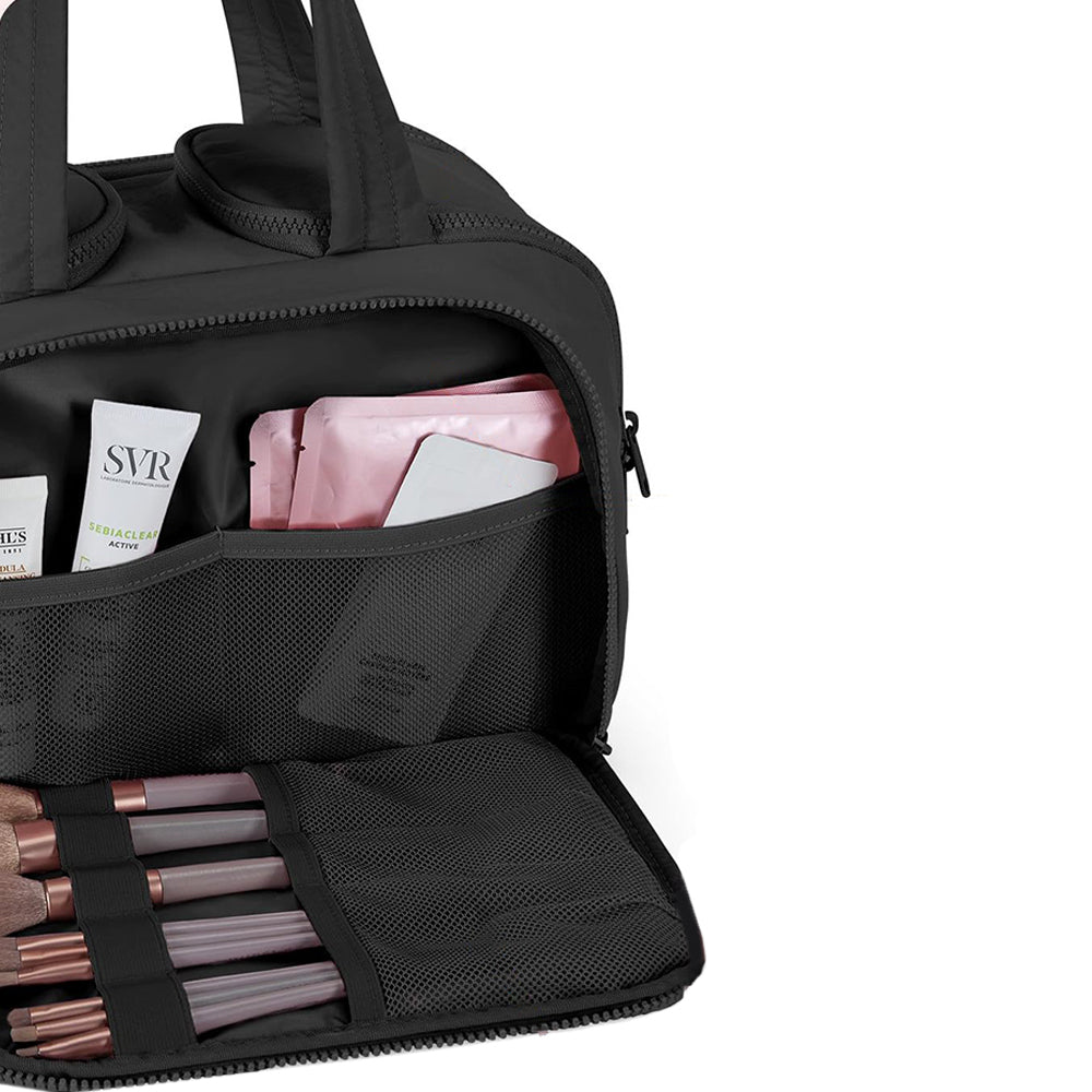 Travel Toiletry Bag Wide-open Makeup Bag Organizer with Handle Black