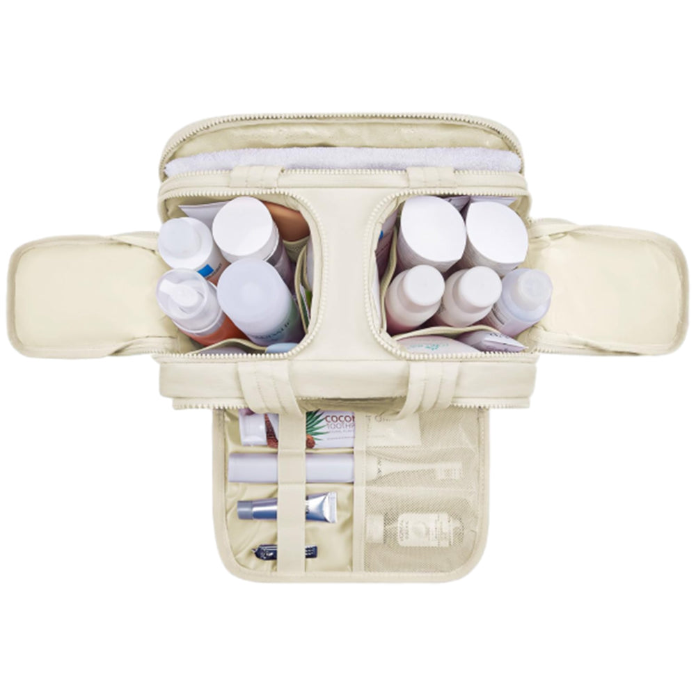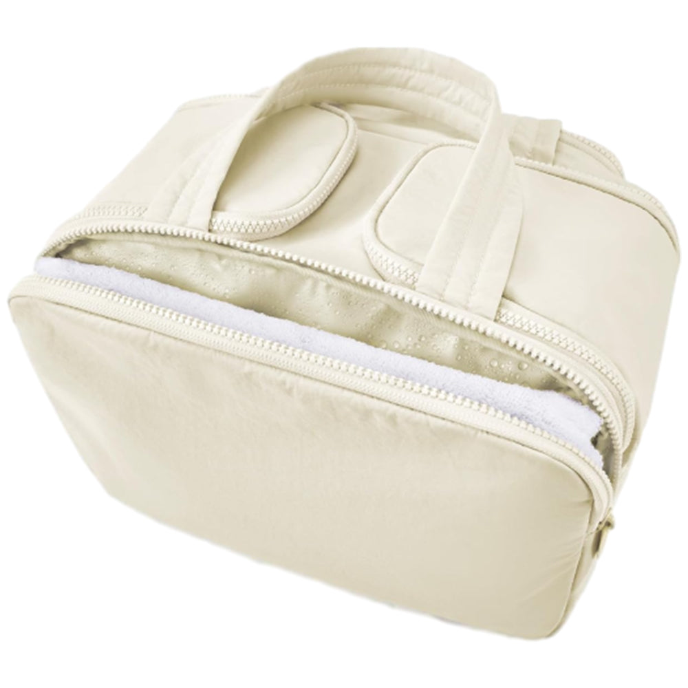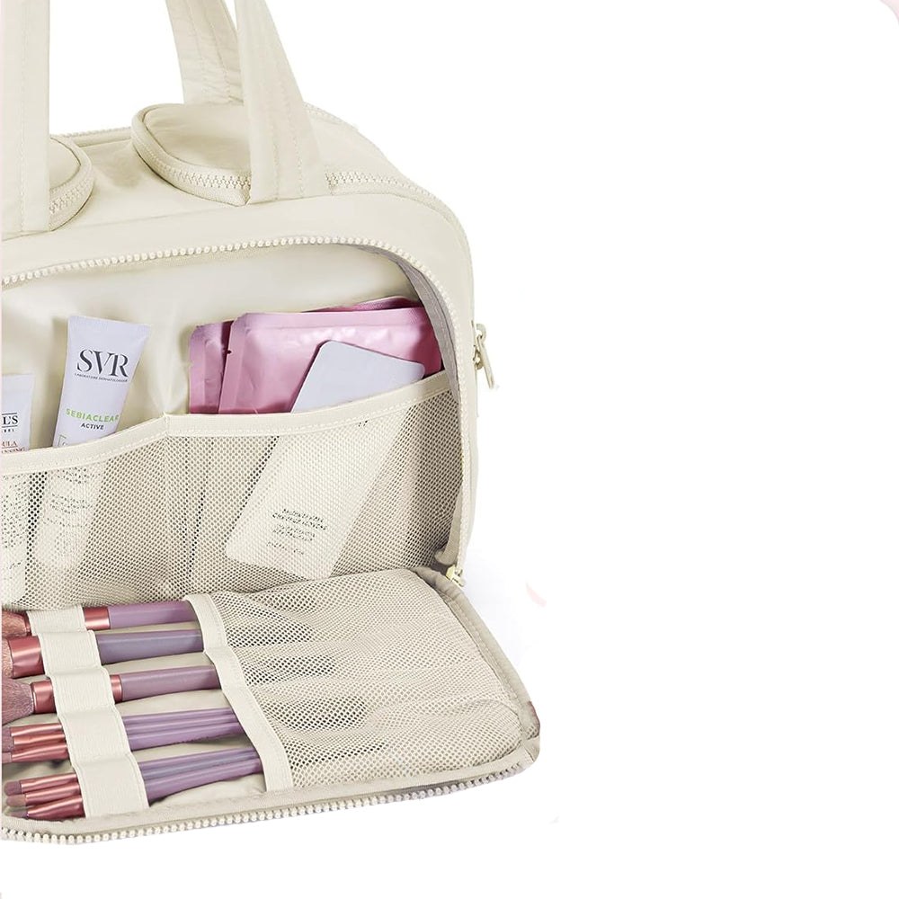 Travel Toiletry Bag Wide-open Makeup Bag Organizer with Handle Beige