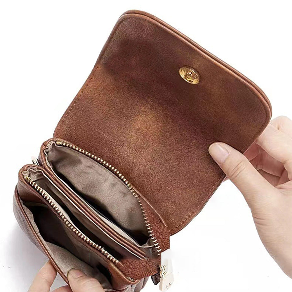 This small crossbody bag for women is made of PU leather which feels soft to the touch, it has triple compartments keep all your belongings organized.