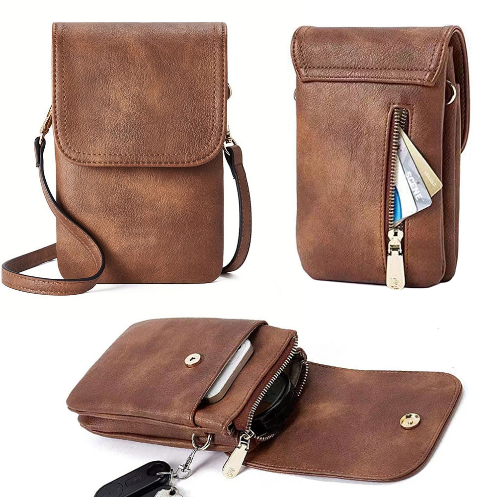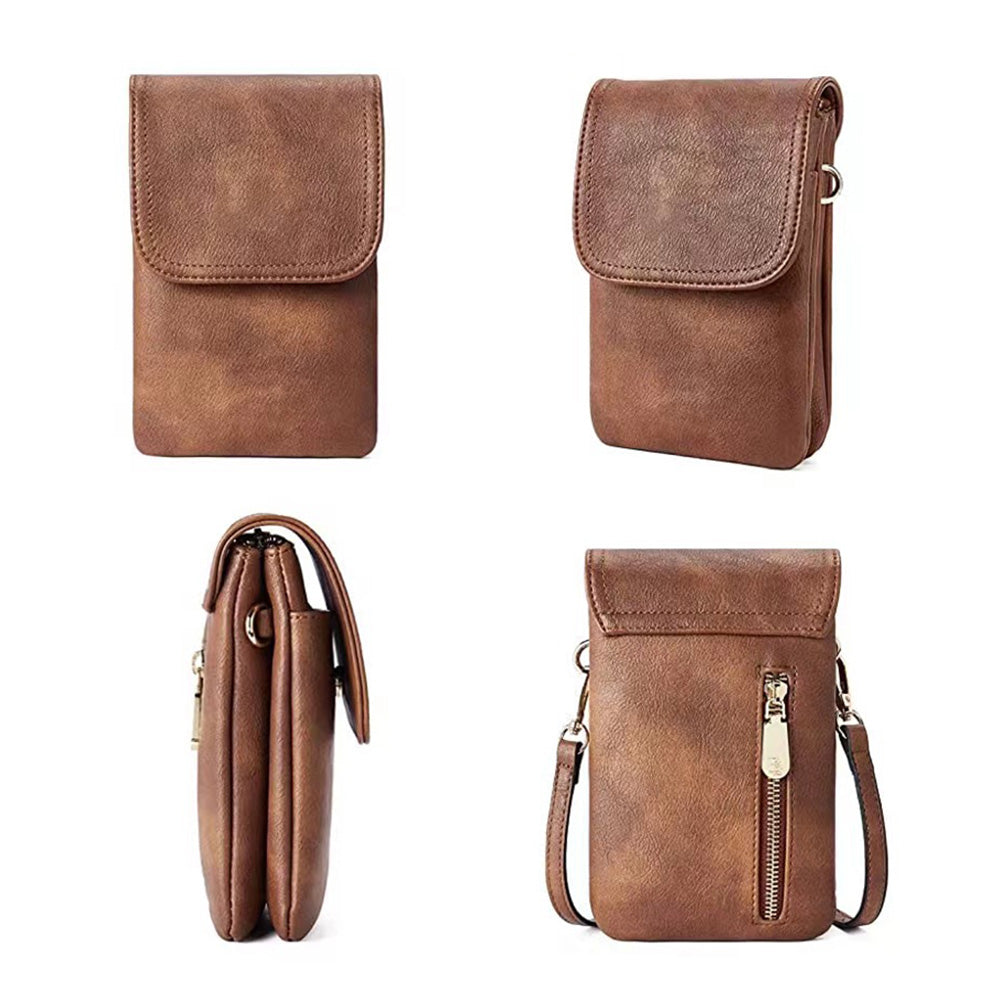 Trendy Crossbody Bags for Women PU Leather Triple Compartment Sling Purse for Cell Phone Brown