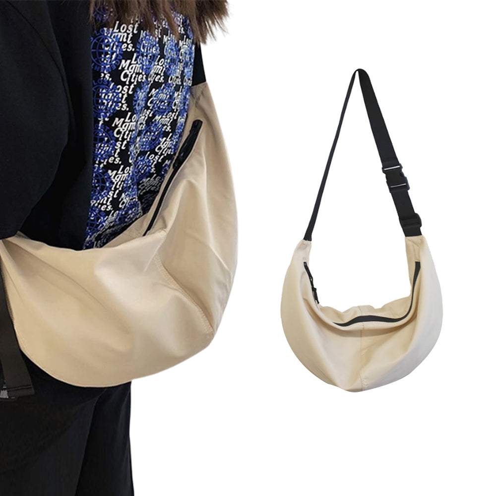 Trendy Dumpling Crossbody Bag Casual Sling Bag Half Moon Shoulder Messenger Bag Khaki