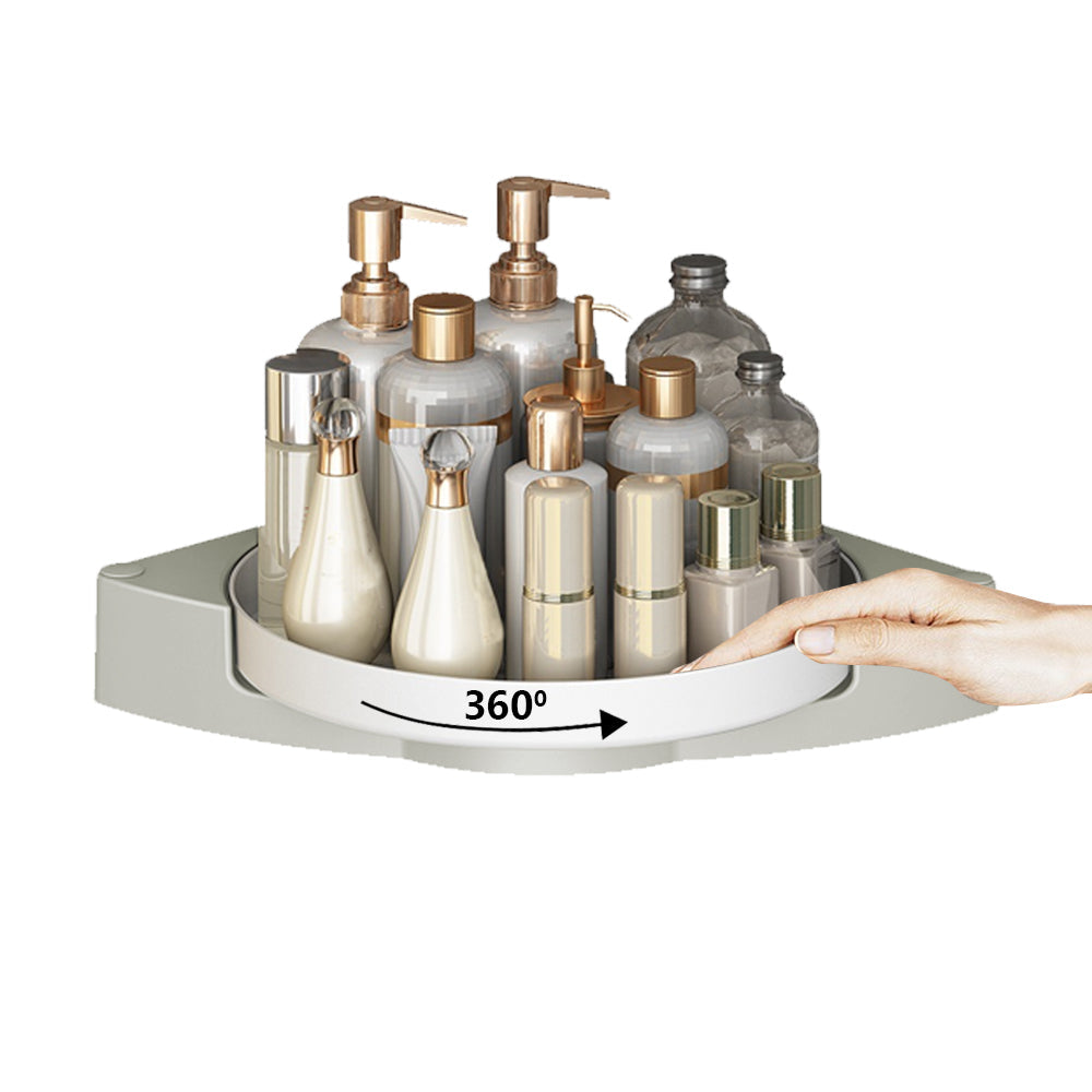 - 360 degrees rotating, just gently rotate it to put hard-to-reach bathroom toiletries in the back to your fingertips without knocking over items or stretching your arms.