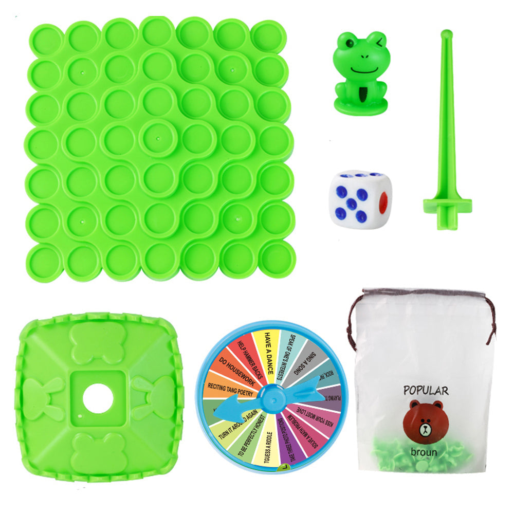 - Sets includes 50 frogs, 1 balance board, 1 support rod, 1 pillar base, 1 adventure wheel, 1 dice, and 1 storage bag.