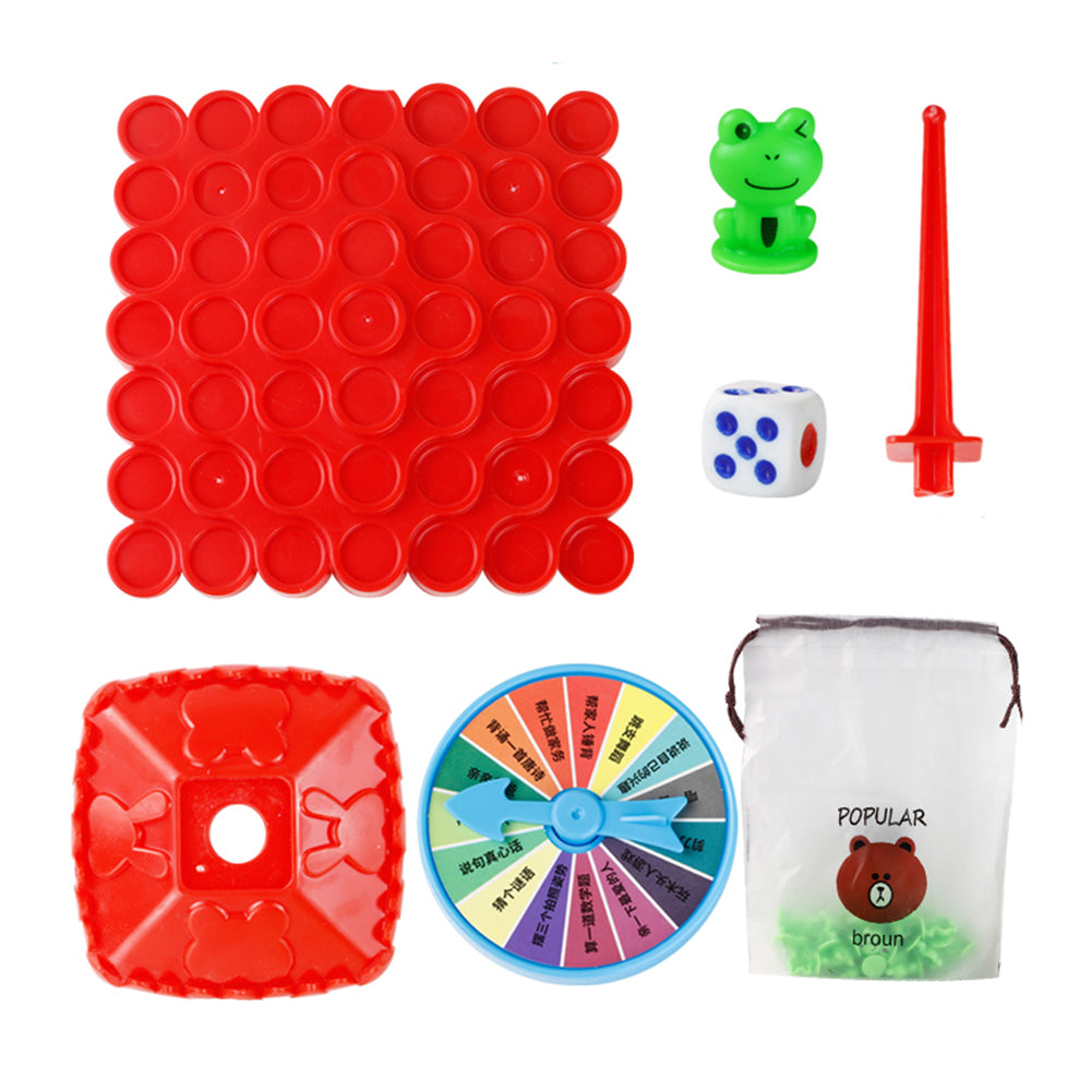 - Sets includes 50 frogs, 1 balance board, 1 support rod, 1 pillar base, 1 adventure wheel, 1 dice, and 1 storage bag.