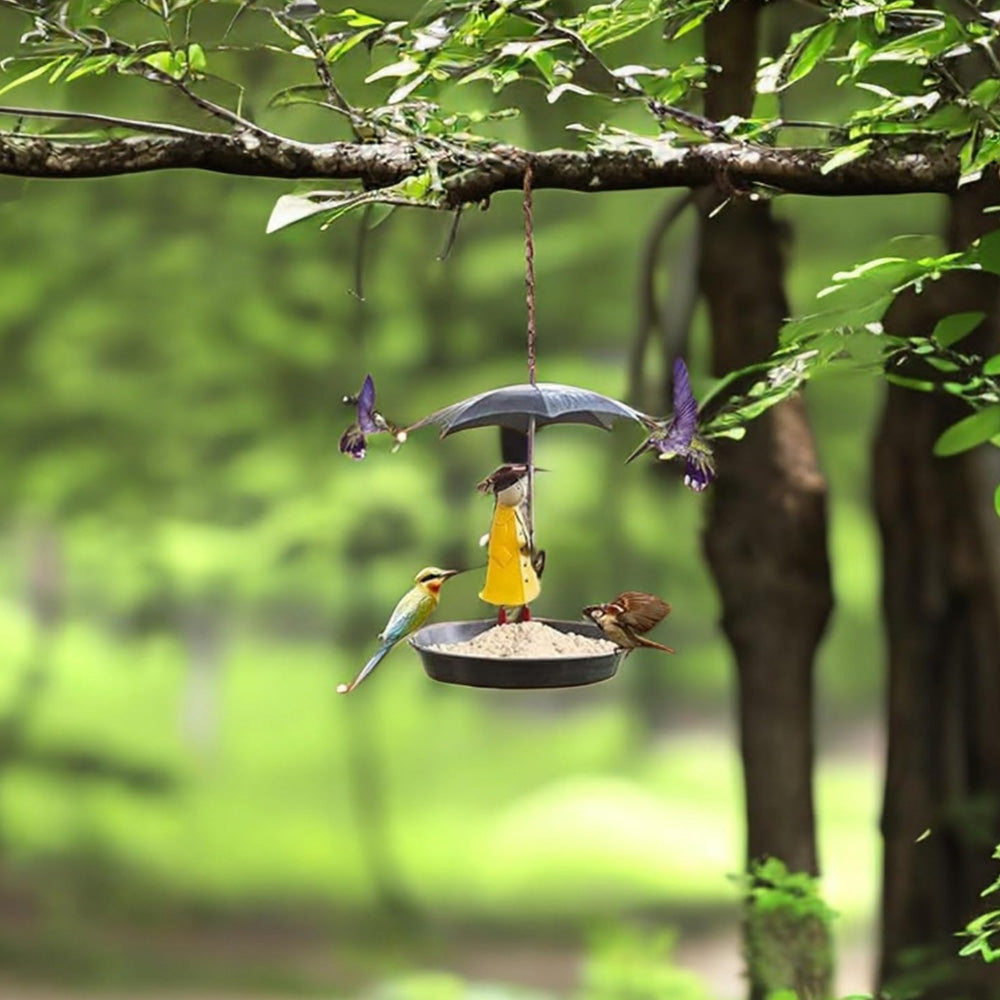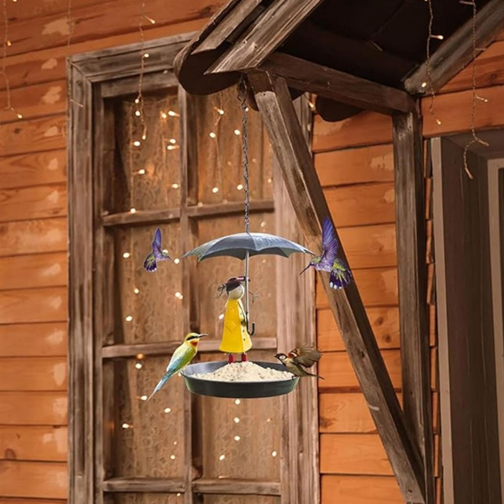 Umbrella Girl Garden Bird Feeder Ornament Hanging Outdoor Decor Home Garden Decor