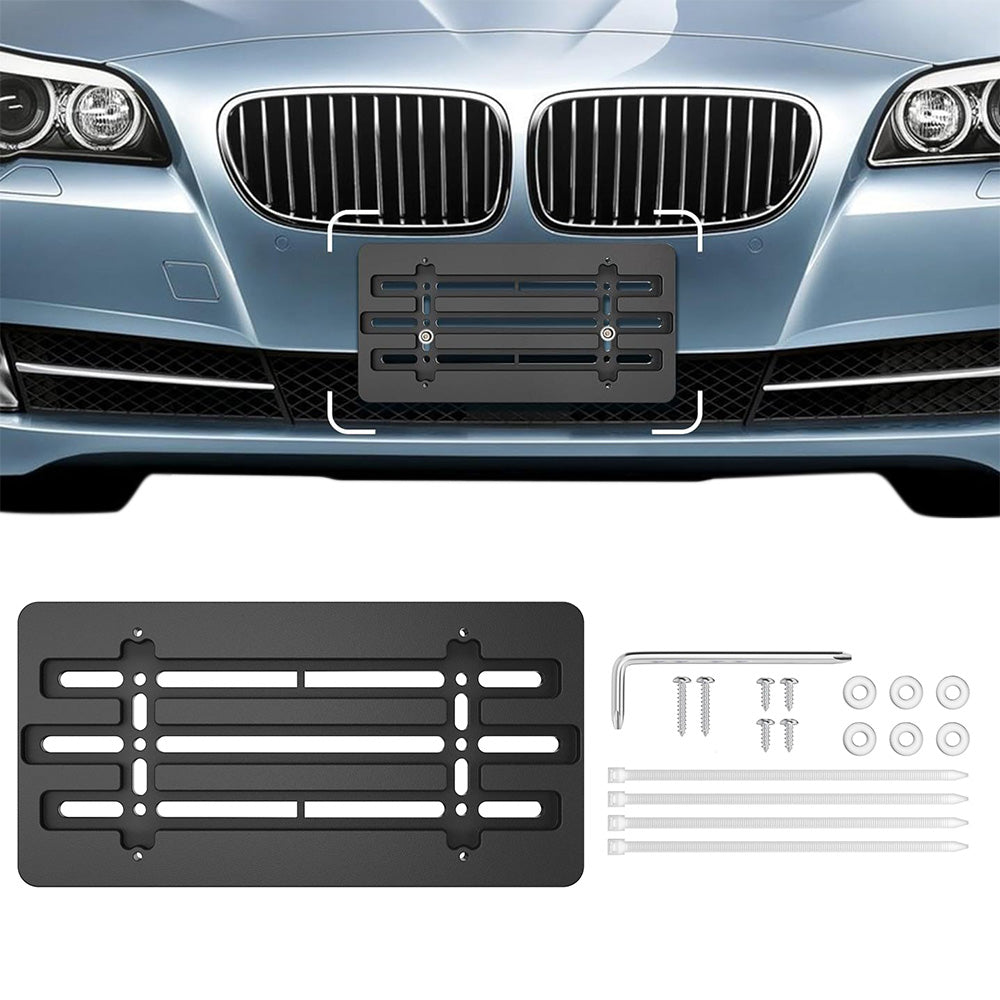 Durable and easy-to-install front license plate bracket kit, compatible with most vehicles for a sleek and secure fit.