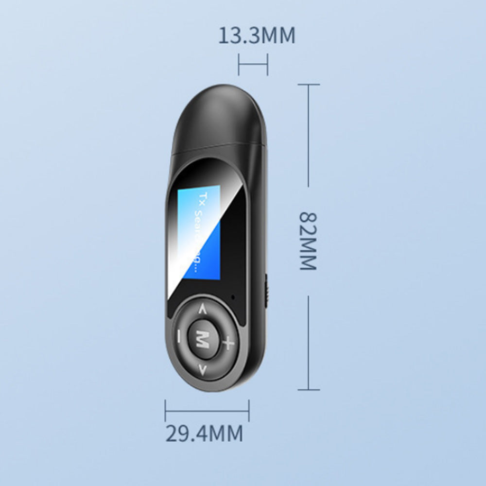 - Dual-mode functionality, one-touch switching between Bluetooth transmitter (send audio to wireless devices) and receiver (stream music to wired speakers) .
