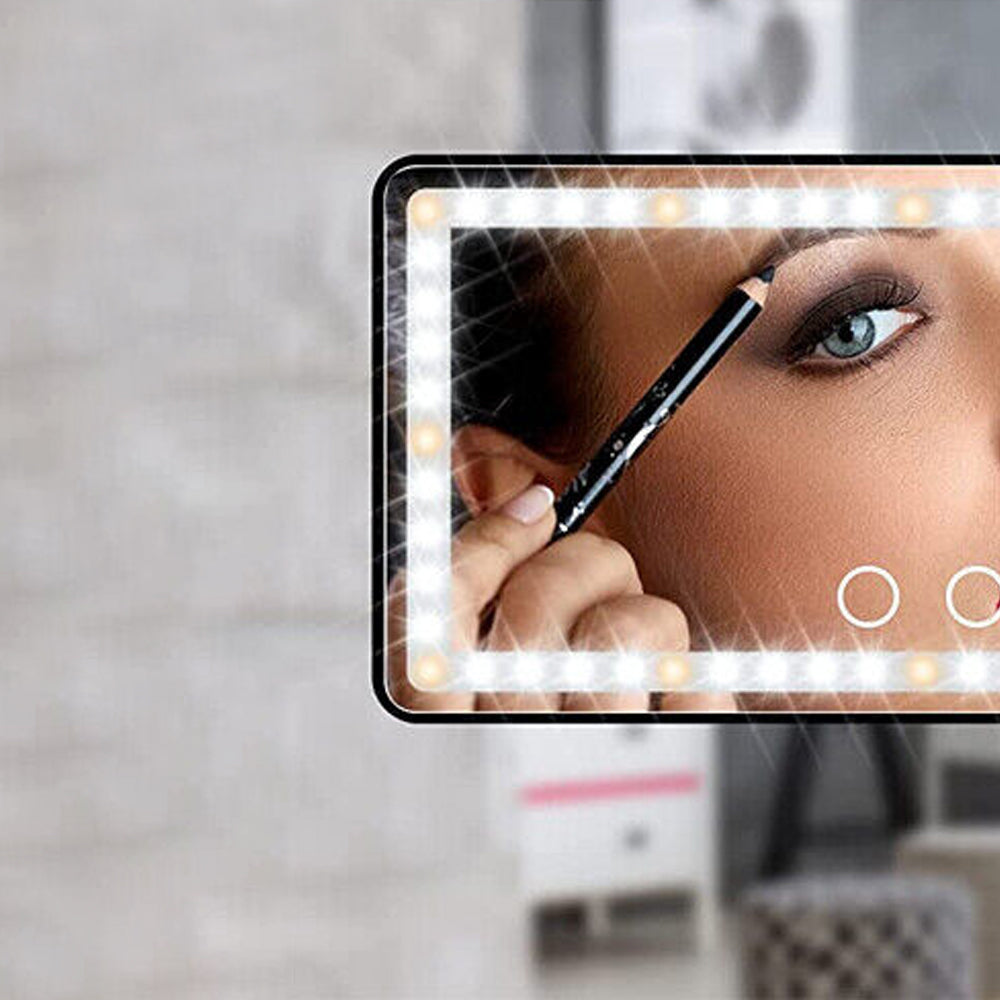 USB Car Visor Vanity Mirror Touch Screen LED Light Makeup Mirror Black