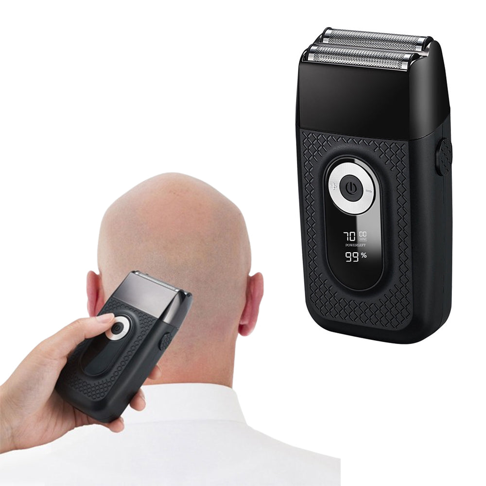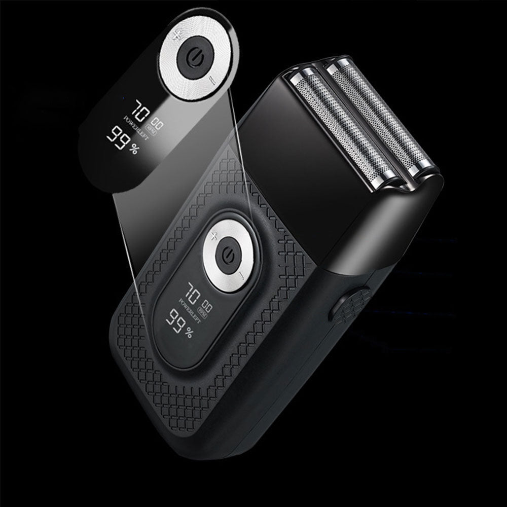 USB Rechargeable Electric Razor LED Display Shaver with Double Floating Blade for Men Black