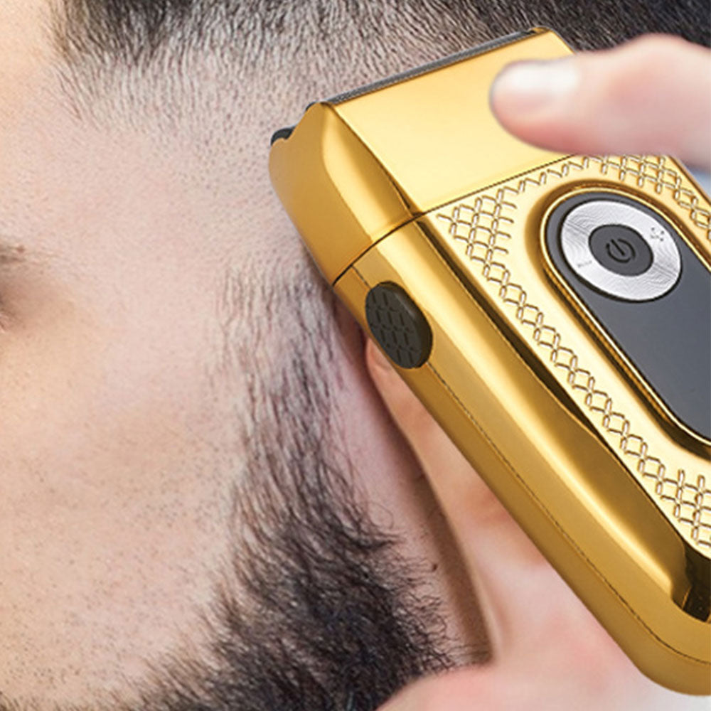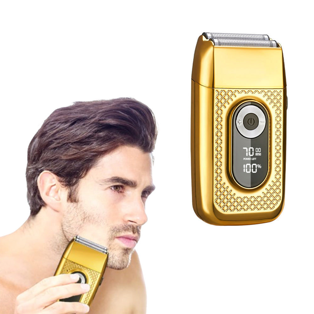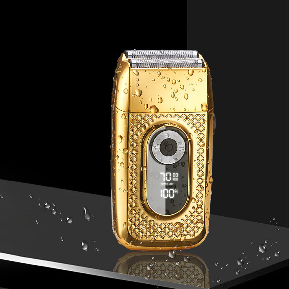 USB Rechargeable Electric Razor LED Display Shaver with Double Floating Blade for Men Gold