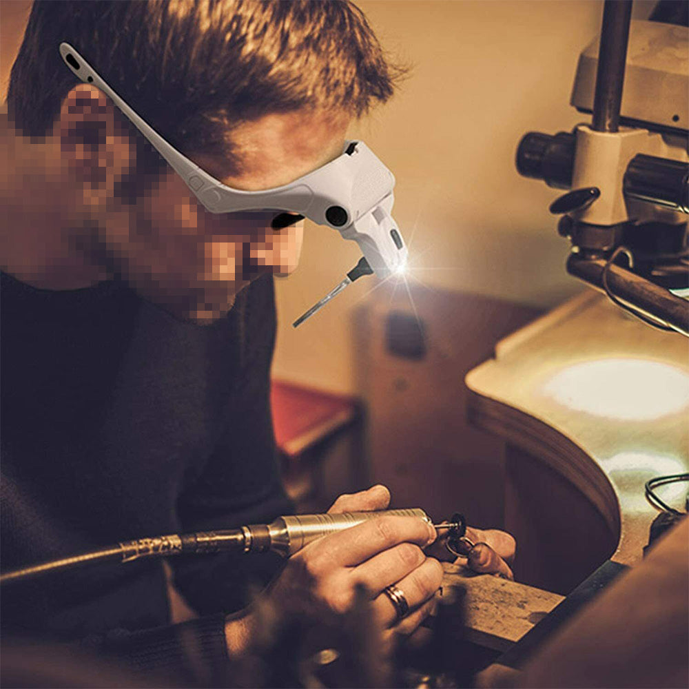 - These USB rechargeable LED head optical glasses provide clear enlargement and illumination for detailed tasks, making them perfect for reading, crafting, and jewelry work.