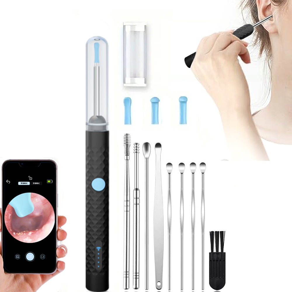 Visual WiFi Ear Wax Removal Kit Wireless Ear Cleaner with Camera Black