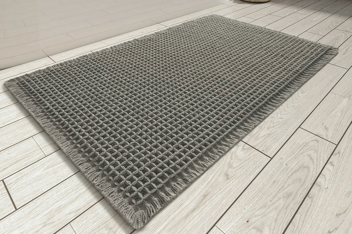 - Enhance your bathroom with our stylish and functional fringed waffle bath mat. Combining elegant design with high performance, this bath mat offers superior absorbency, comfort, and security.