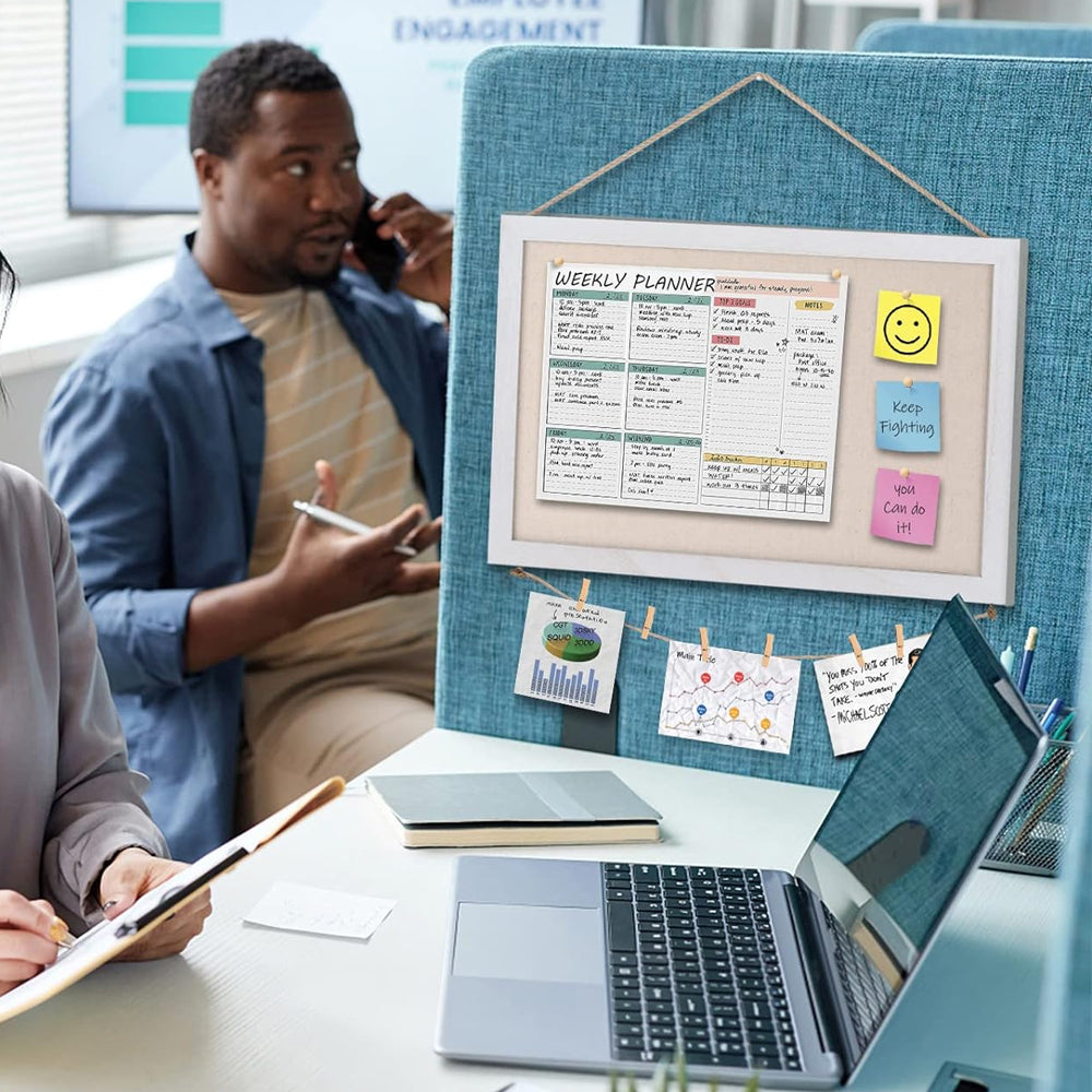 - The bulletin board is made of quality dense cork, the pin board will not be deformed after long-term use, and there will be no ugly pinholes.