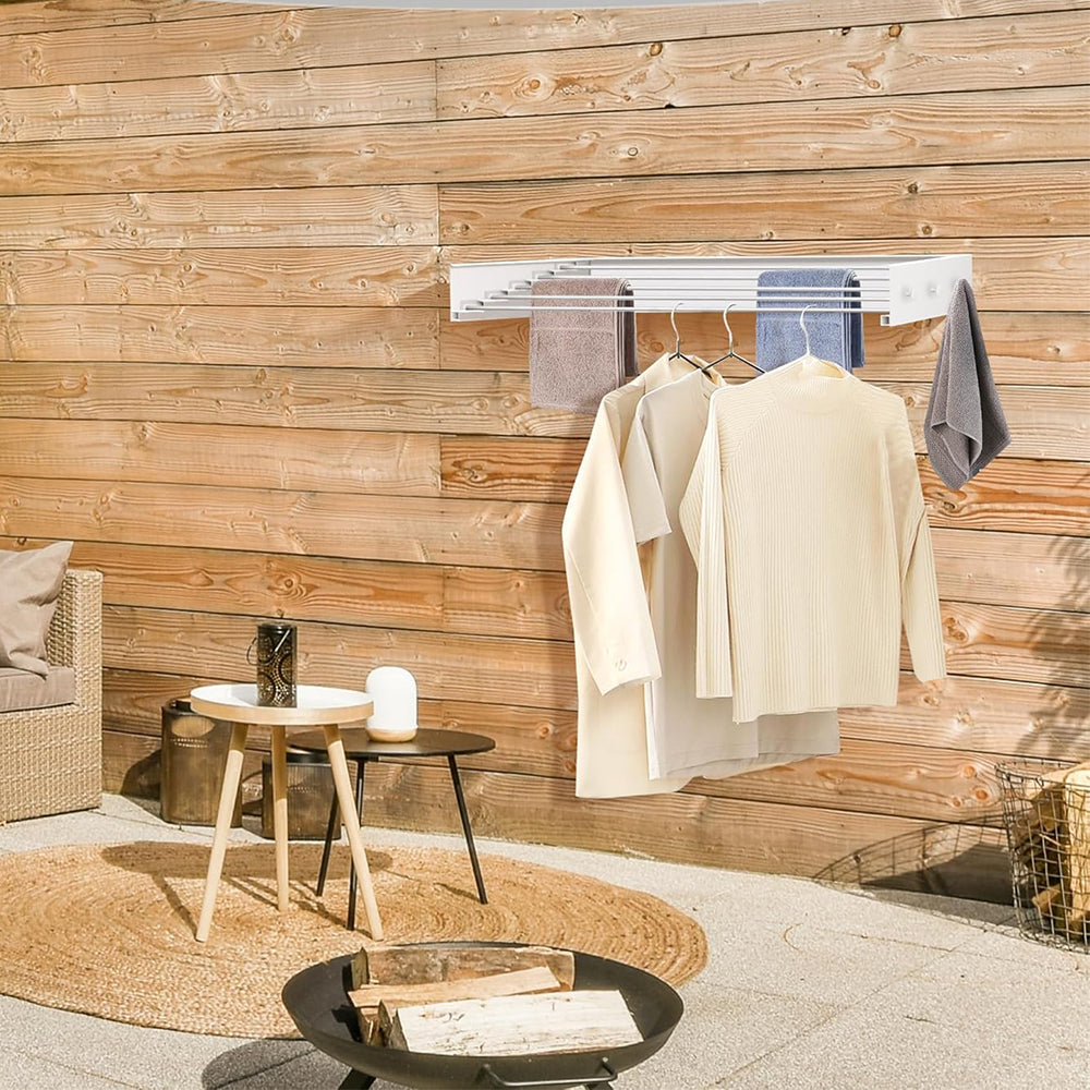 Wall Mounted Foldable Laundry Drying Rack with 6 Hooks Collapsible Clothes Drying Rack