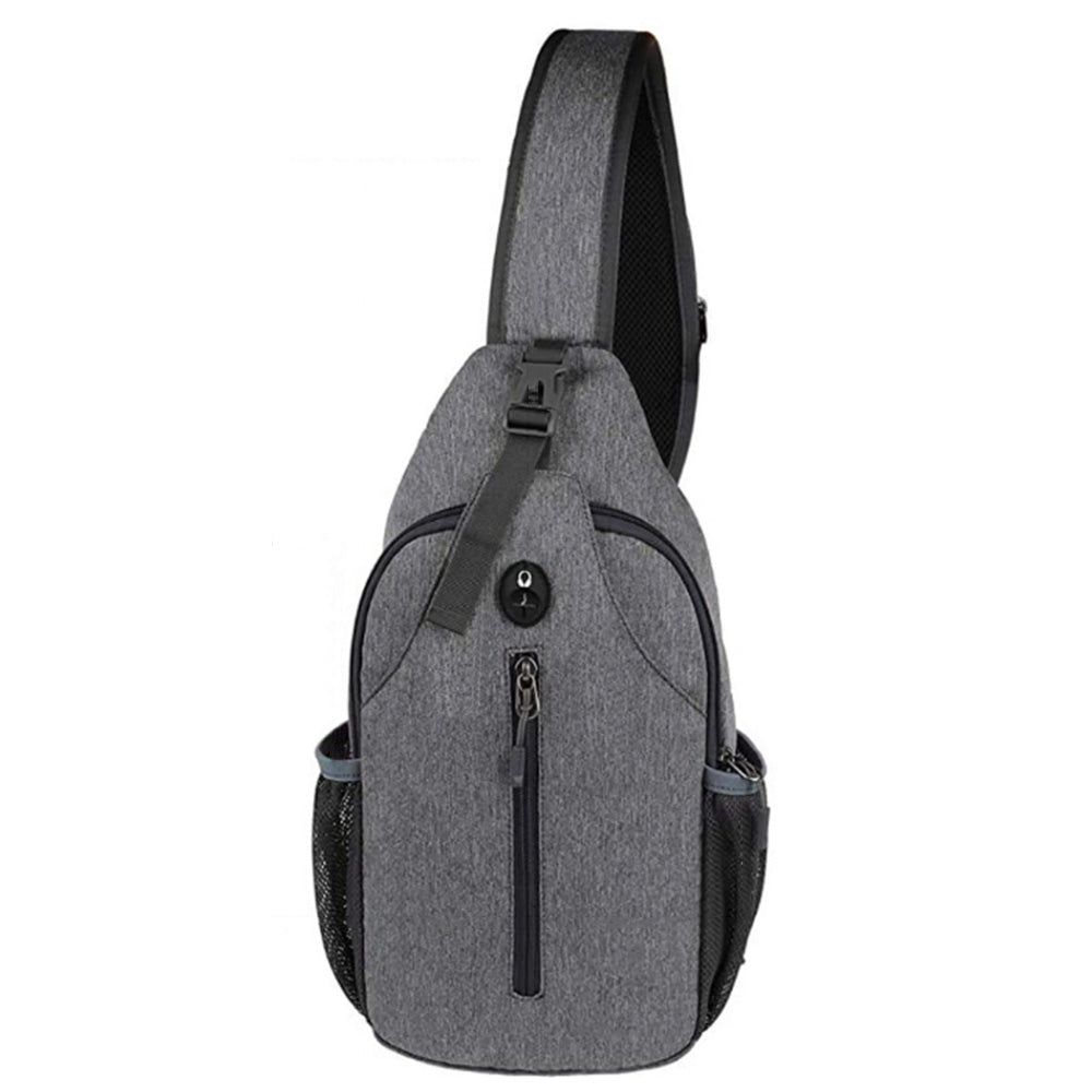 Water-Resistant Crossbody Bag Travel Sling Shoulder Bag with Multiple Compartments Headphone Port Grey