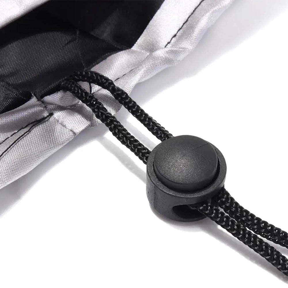- The cover includes a drawcord and buckle at the bottom, allowing you to adjust and secure it around chair legs to prevent wind from blowing it off.
