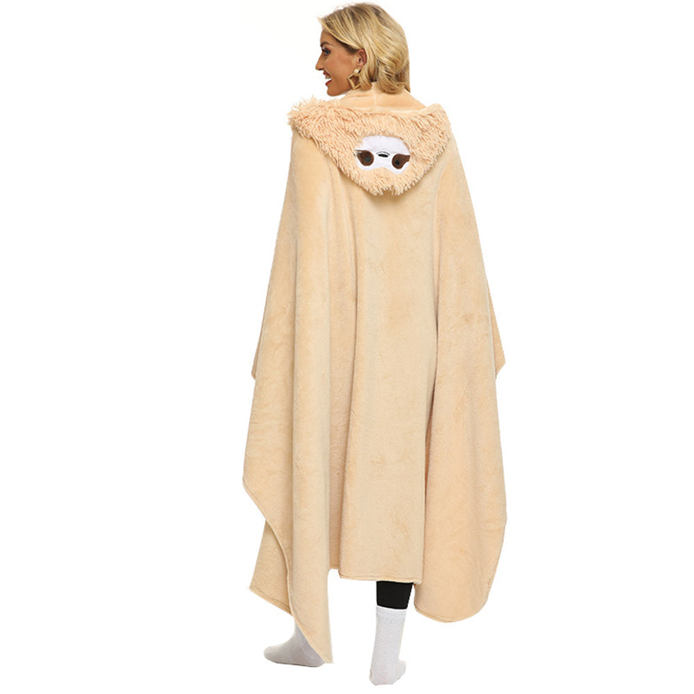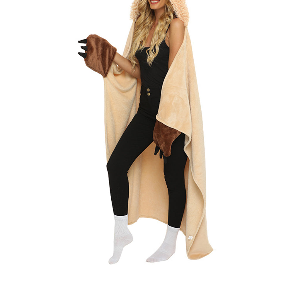 Wearable Animal Style Hooded Blanket Warm Cozy Plush Hoodie Throw Cloak Wrap for Adults Khaki