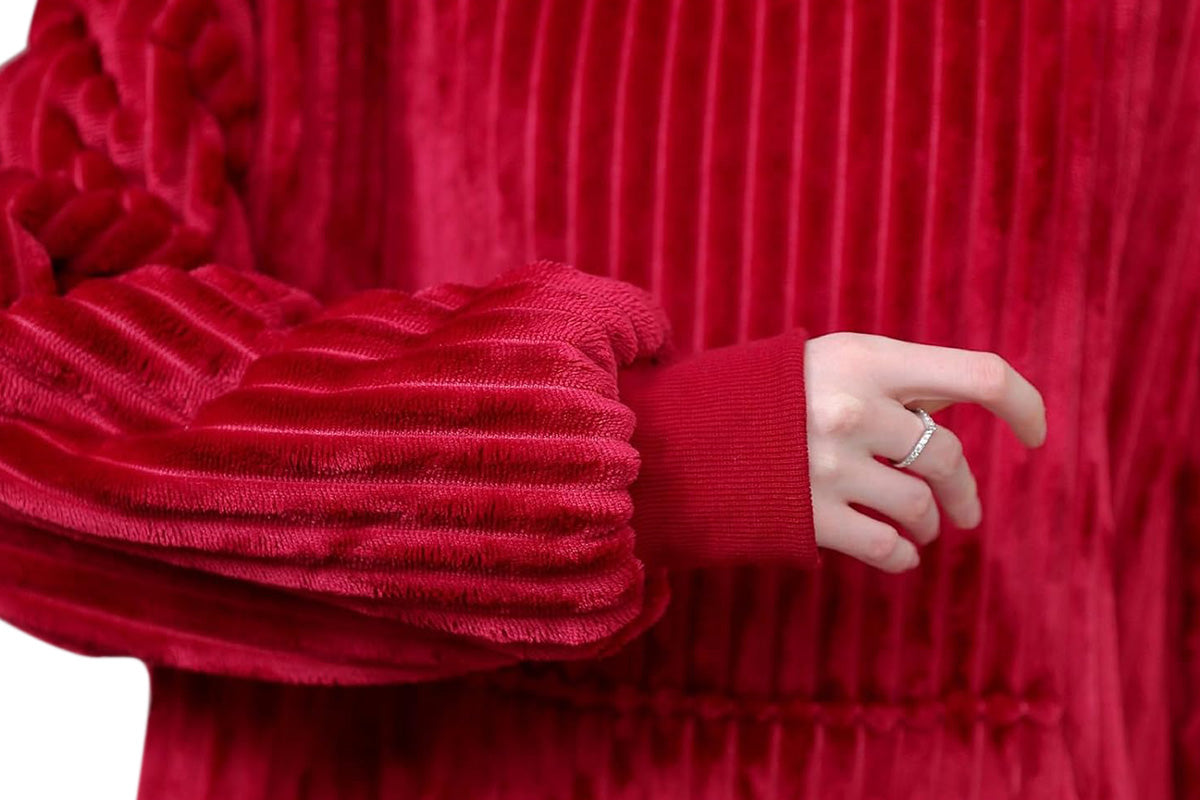 Wearable Blanket Sweatshirt for Women and Men Thick Flannel Hooded Sweatshirt Loungewear -Wine Red