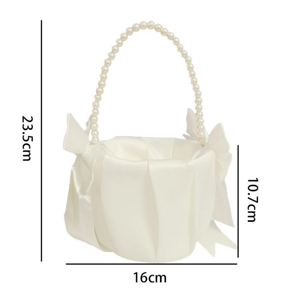 - Handmade Design: Decorated with delicate bows and pearls, this satin fabric basket adds a dreamy and romantic touch to your special day.