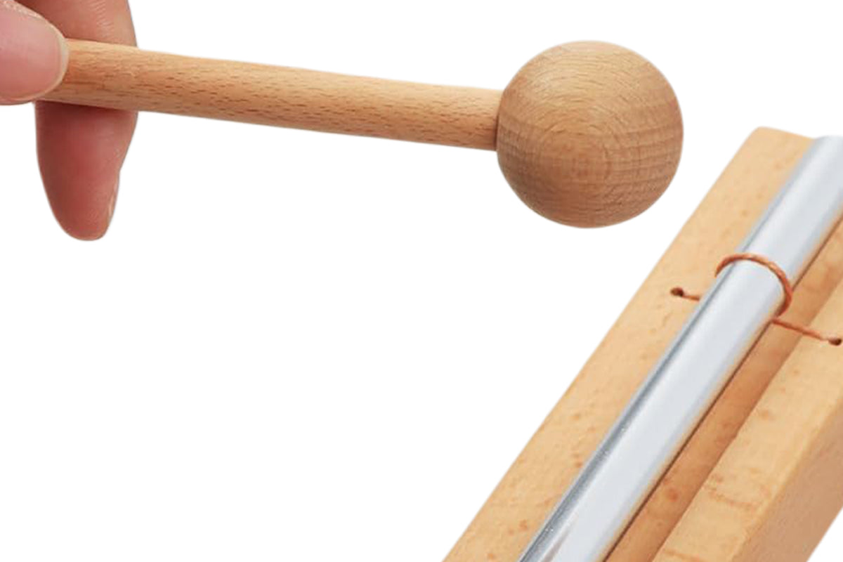- The hand chime is tuned to a clear tone. A gentle tap of the included mallet emits powerful tones of singular beauty that last and last, a great classroom or meditation hand chime.