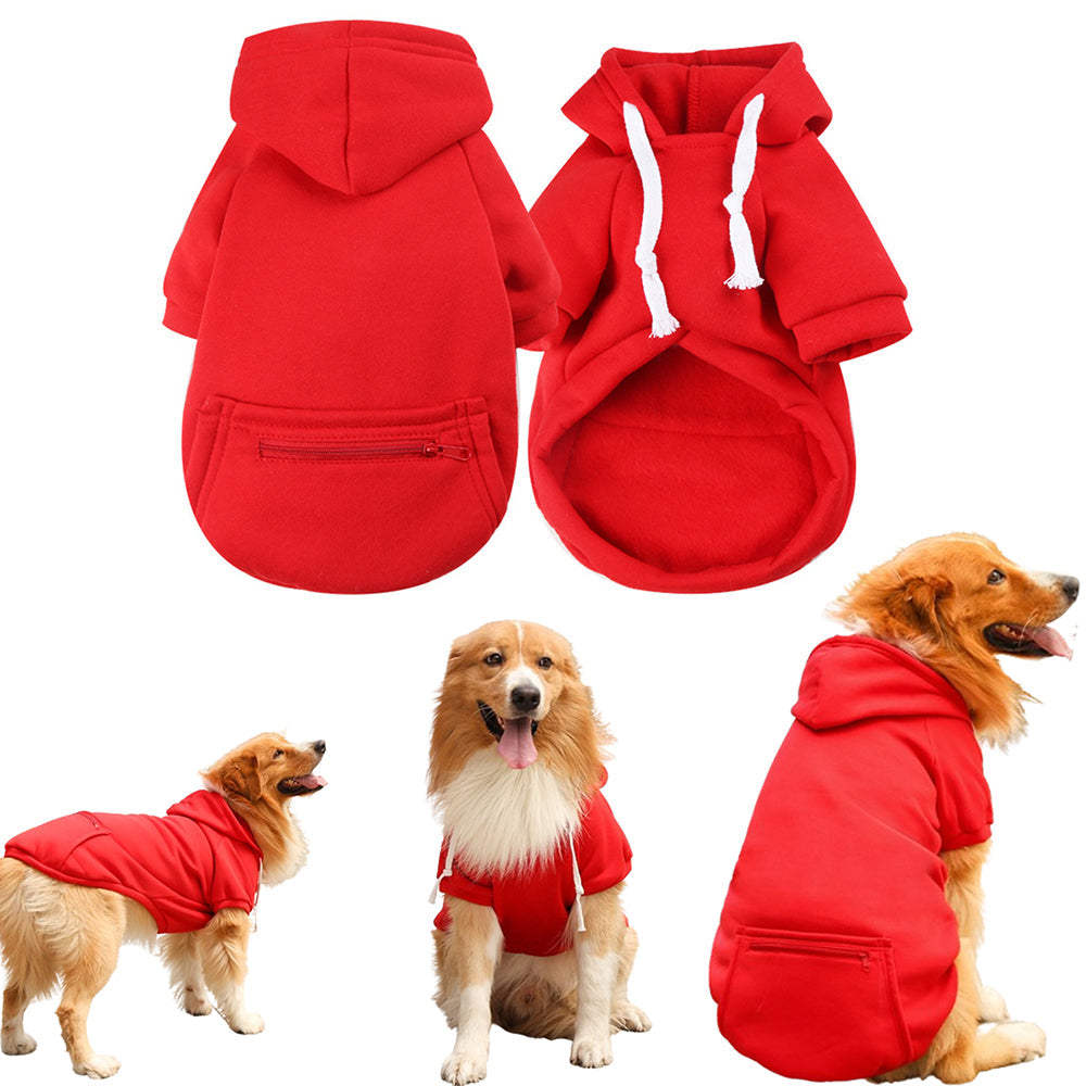 Winter Dog Hoodie Sweatshirts with Pockets Warm Dog Jumper Puppy Clothing Coat Shirt Red