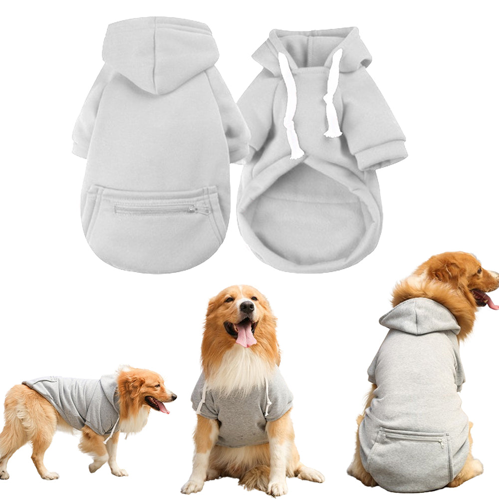Winter Dog Hoodie Sweatshirts with Pockets Warm Dog Jumper Puppy Clothing Coat Shirt Grey