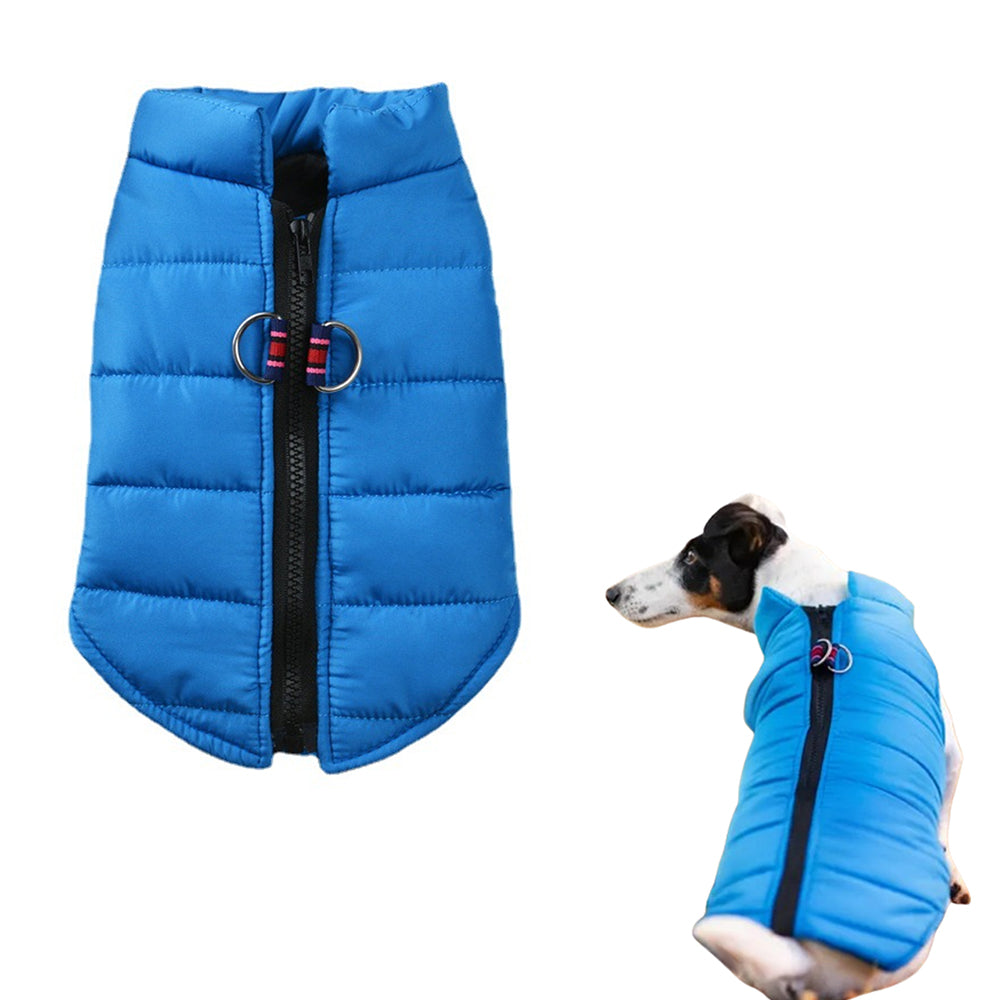 Winter Pet Waistcoat Zipper Clousure Warm Sleeveless Coat for Going Out Blue