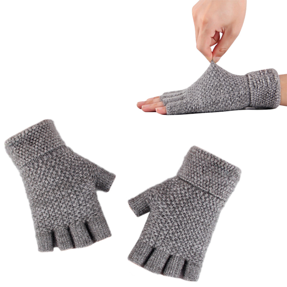 Winter Warm Fingerless Gloves Thermal Half Finger Knitted Mittens Light Grey