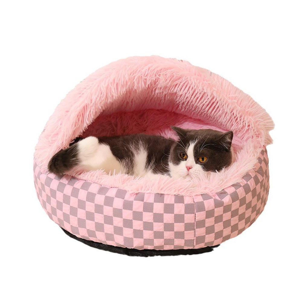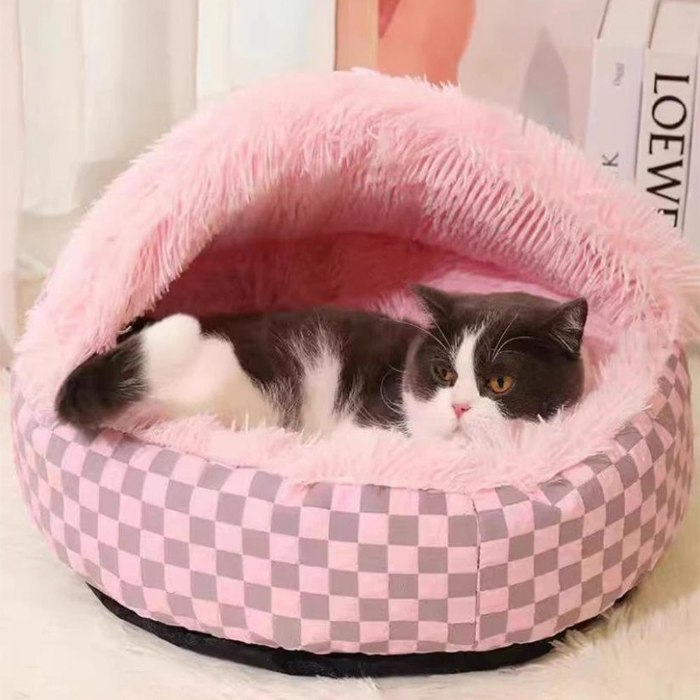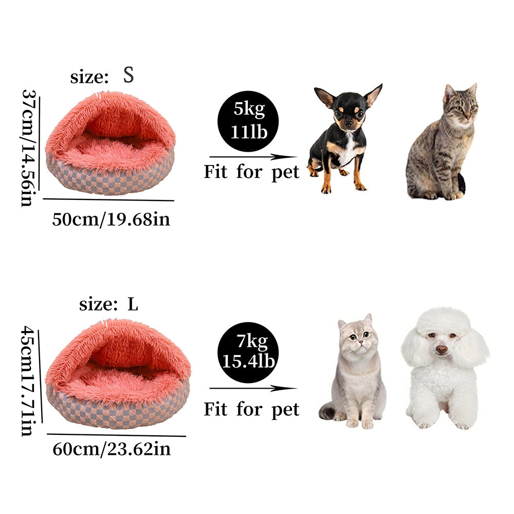 Winter Warm Pet Bed Cat and Dog Nest Plush Semi-Closed Pet Bed Sofa Pink