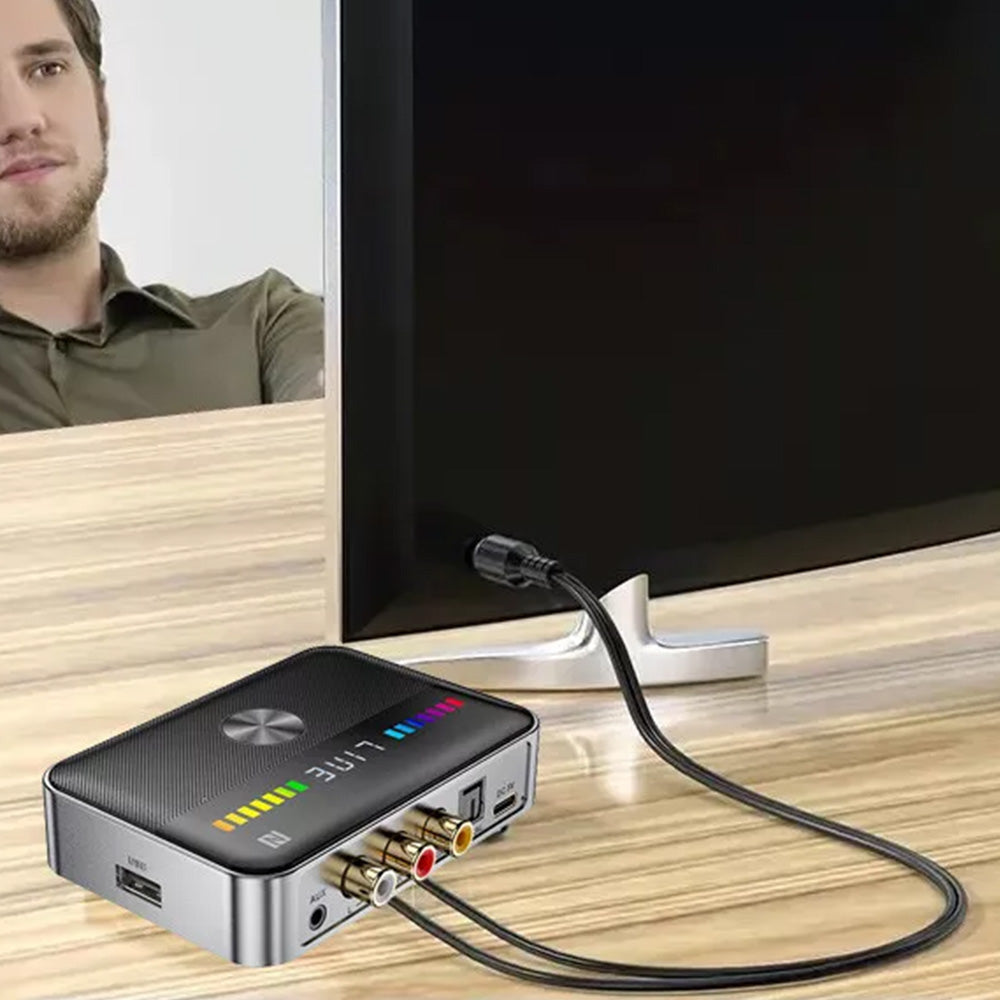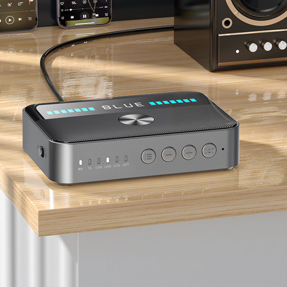 The 2 in 1 wireless Bluetooth adapter with dual-mode functionality, HD LED display, and multi-interface support for seamless audio streaming across devices.