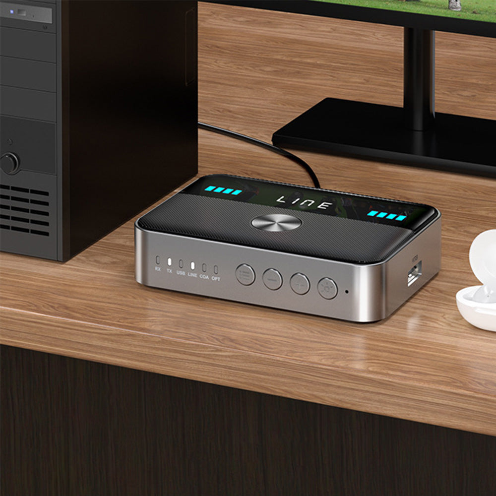 Wireless Bluetooth 5.3 Audio Transmitter Receiver 2-in-1 Audio Adapter with LED Display AUX RCA Coaxial Optical USB Input