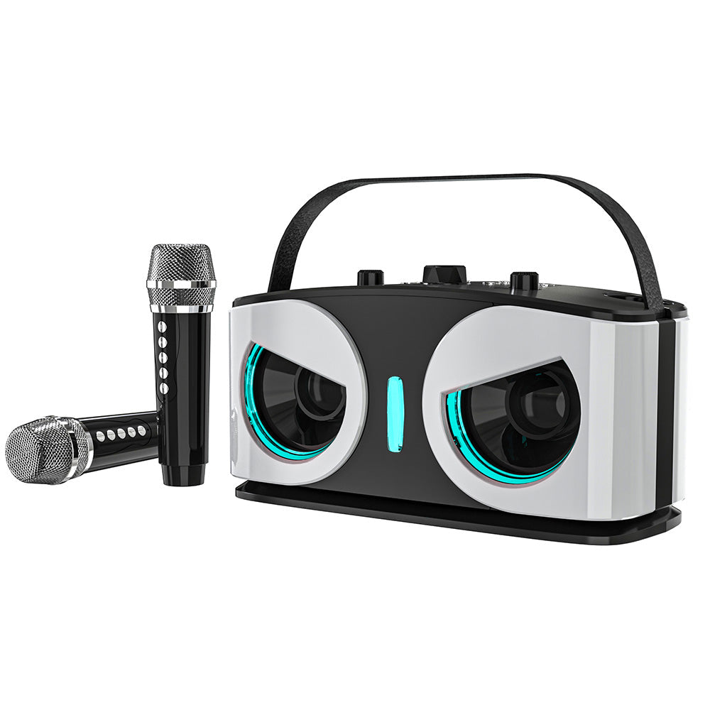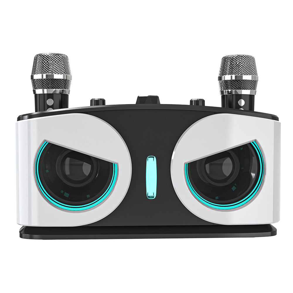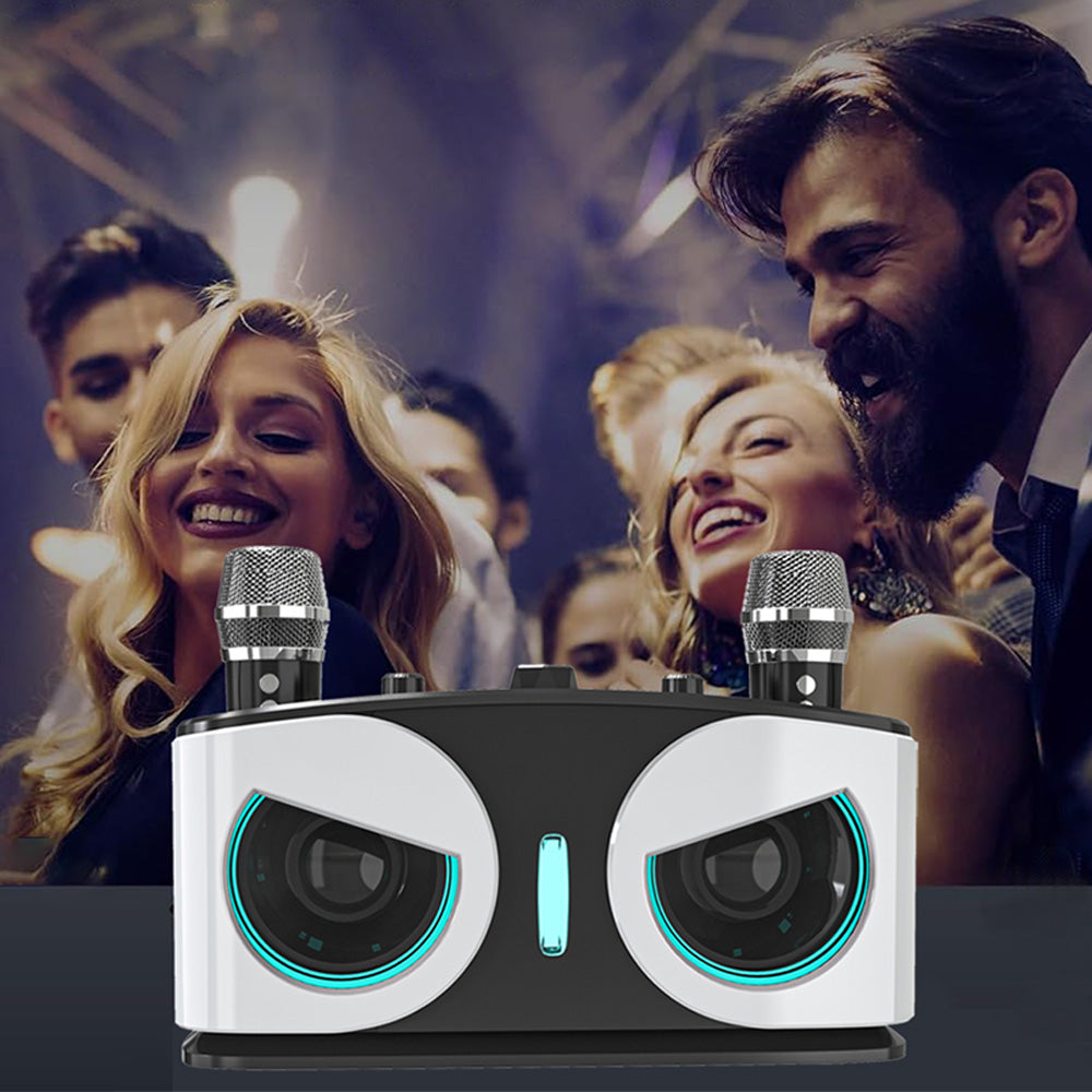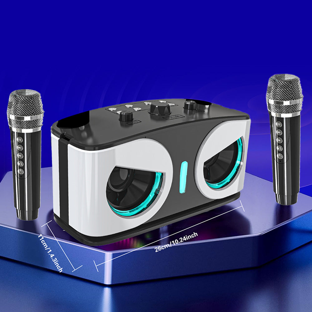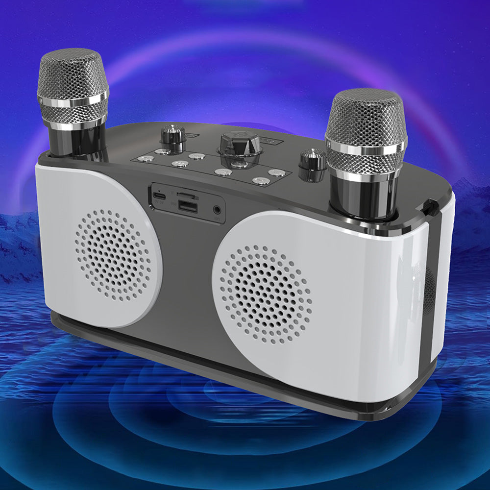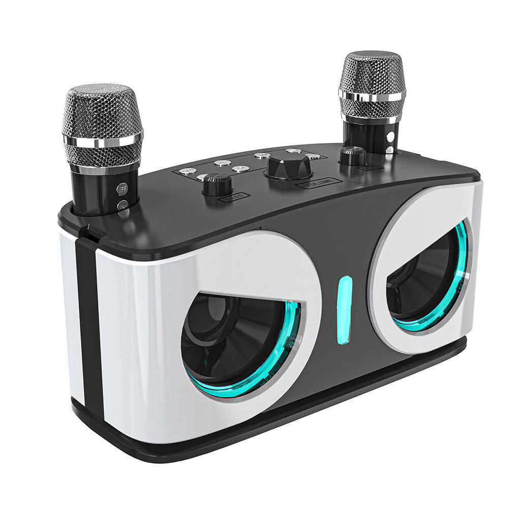 Wireless Bluetooth Karaoke Speaker with 2 Microphone Home KTV Set White