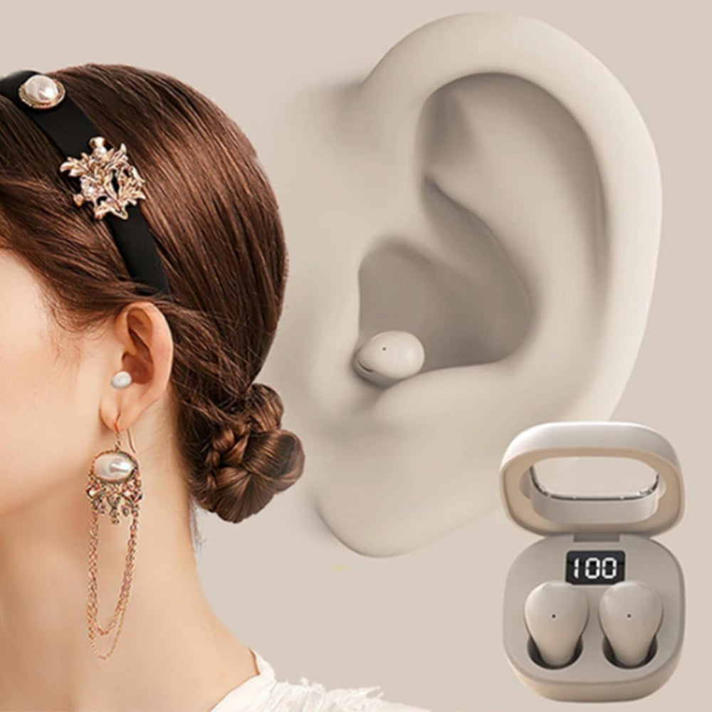 Wireless Bluetooth Small Headphone Mini Invisible Earbuds with Charging Case for Sleep Work Sports Beige