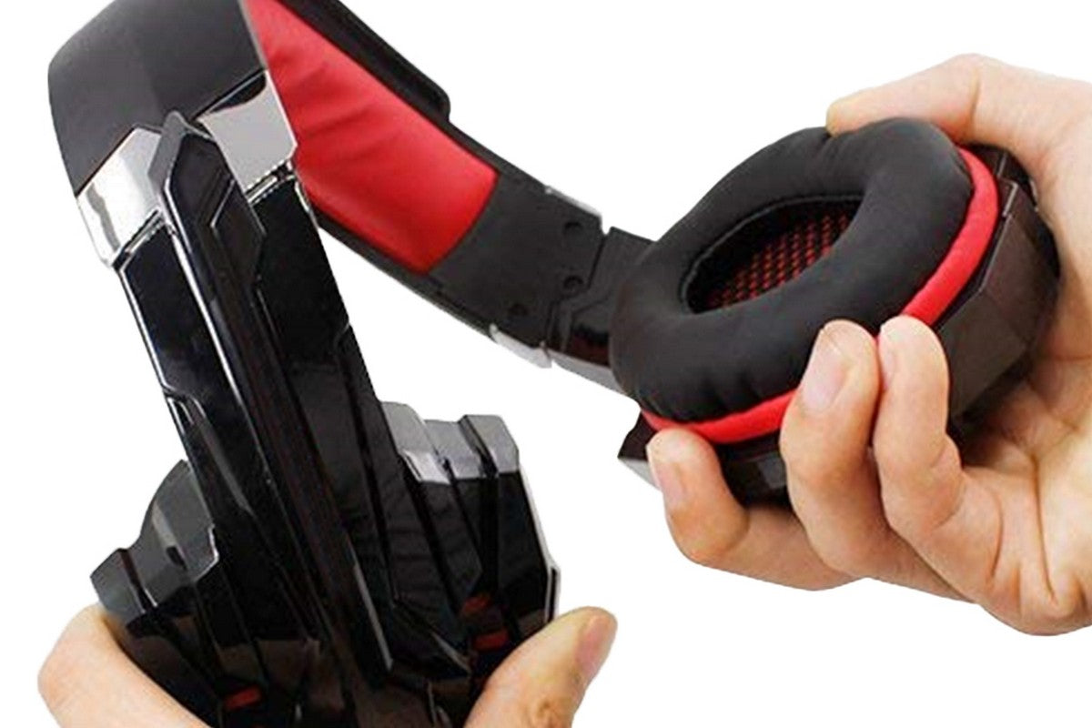 Wireless Gaming Headset Over Ear Headphones with LED Light for PC Mac Laptop Phone-Red