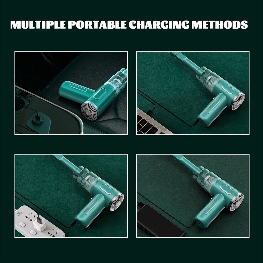 Wireless Handheld Vacuum Cleaner for Car and Home Rechargeable Mini Dust Blower Green