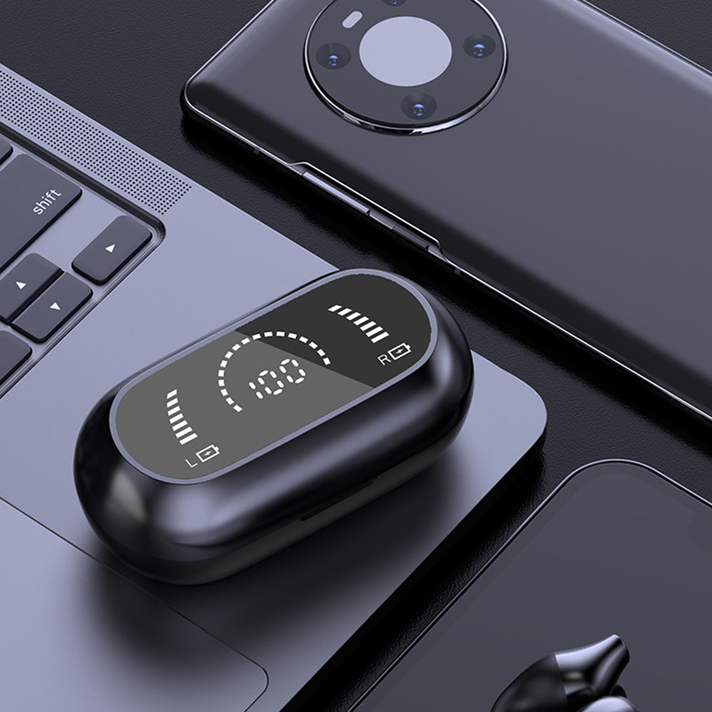 Upgrade the LED three-true digital display - The included charging case can display real-time remaining power of the charging case, the left earphone and the right one.