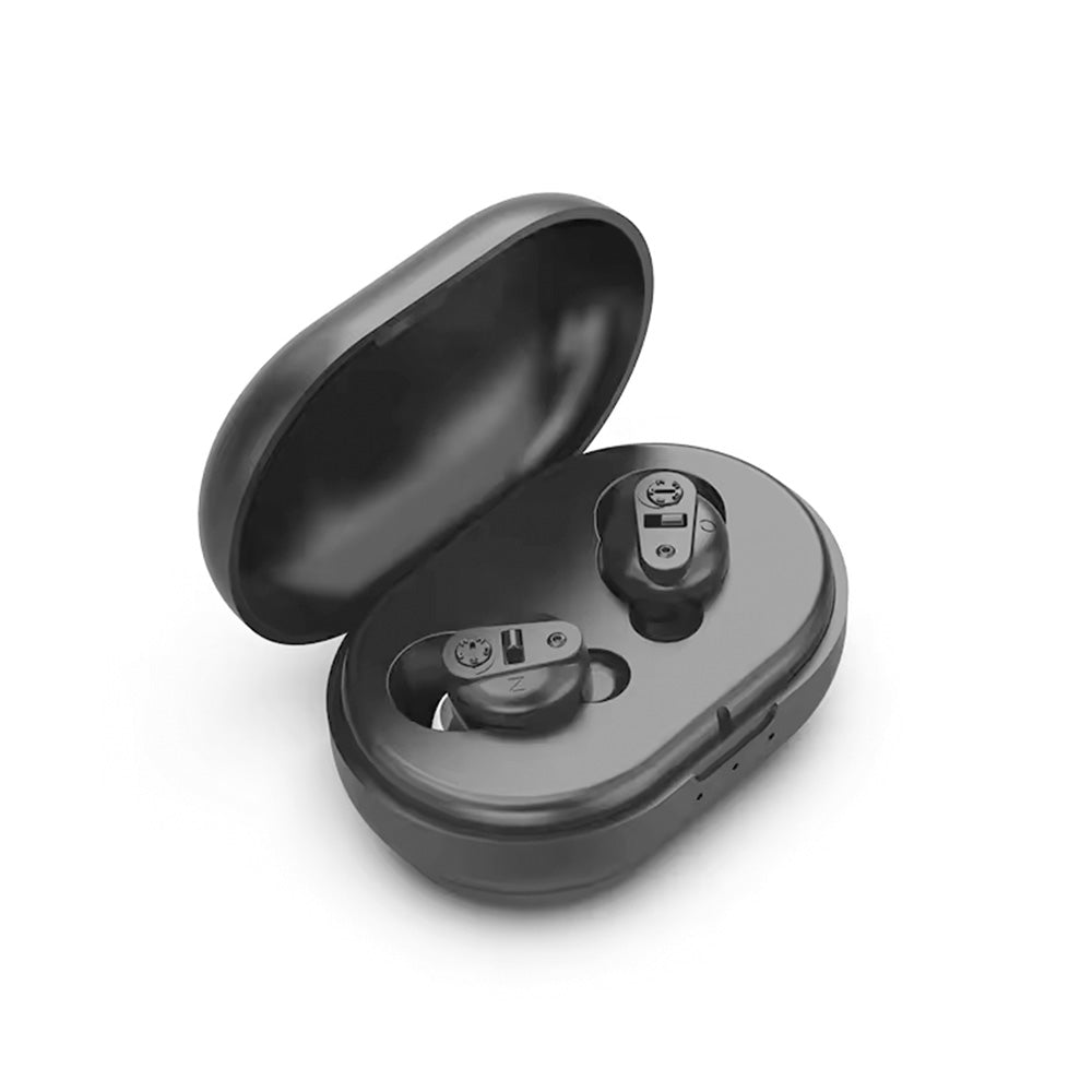 - This hearing aid set includes 2 personal sound amplifiers, 1 charging box, 8 pairs of earplugs, 2 brush, 2 screwdrivers, 1 cleaning needle, 1 user manual and 1 charging cable.