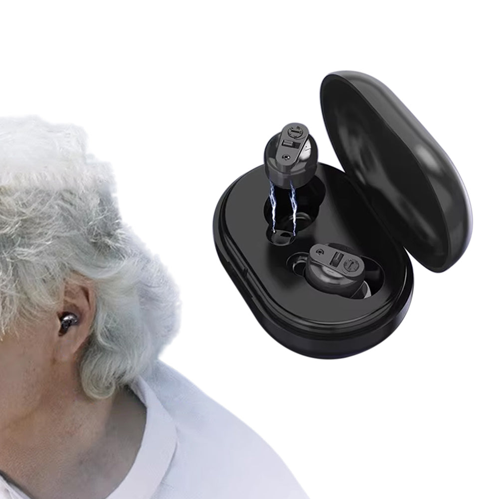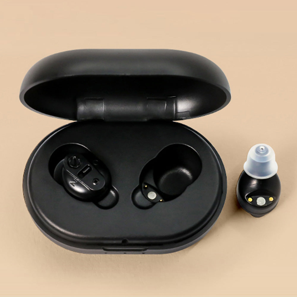 Wireless Hearing Amplifier Rechargeable Hearing Aids with Portable Charging Case Sound Enhancement for Hearing Loss Black