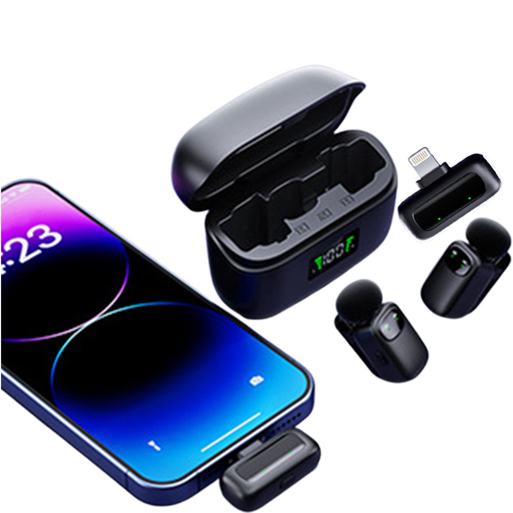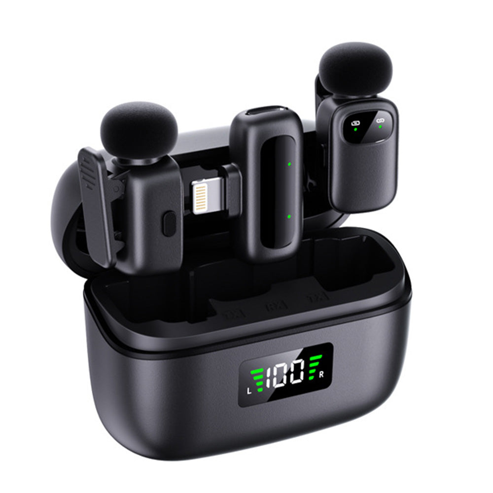 Wireless Lavalier Microphone with Charging Case AI Voice Changer Lapel Microphone for Video Recording Podcast Lightning Style