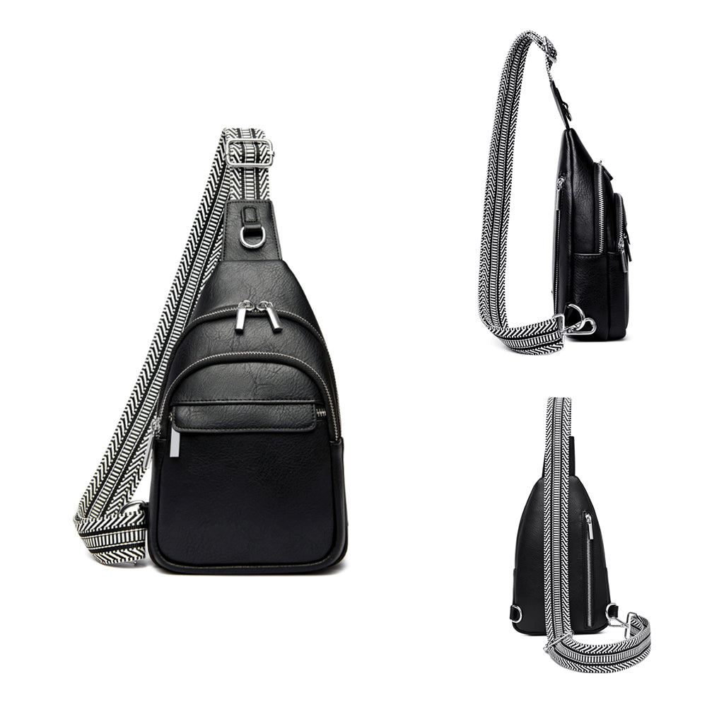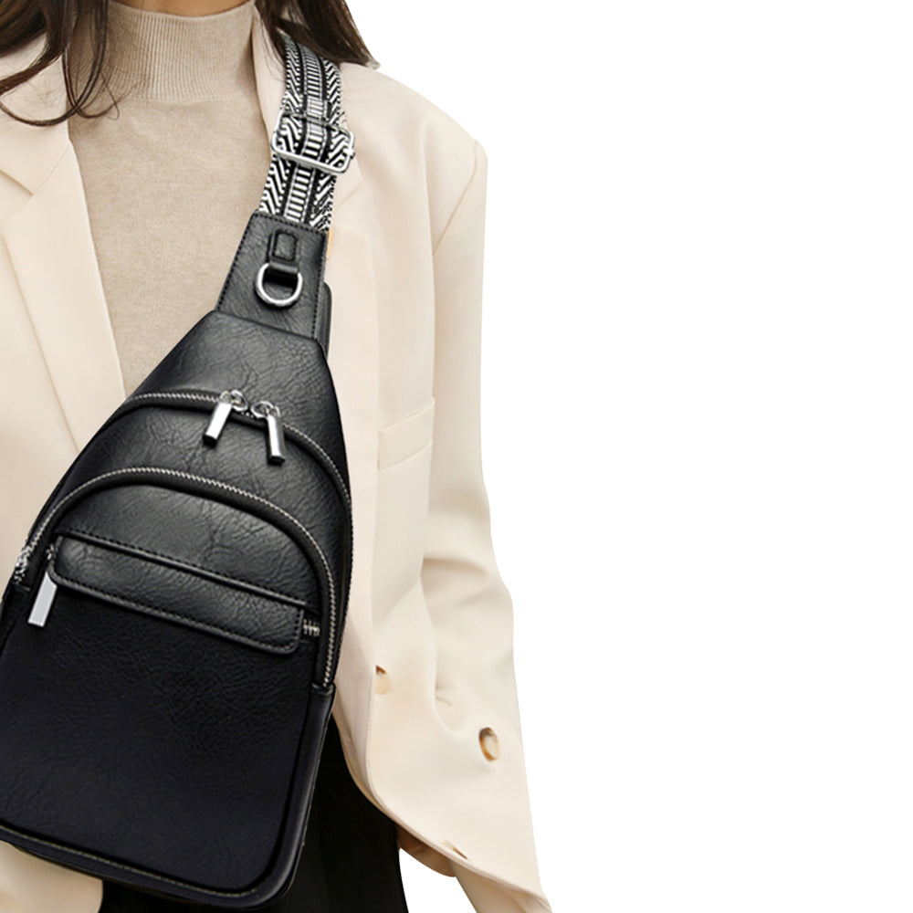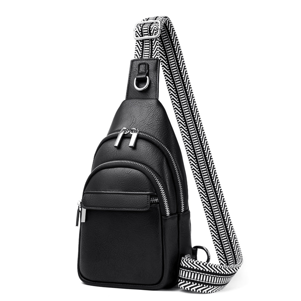 Women Crossbody Bag PU Leather Sling Bag Small Chest Bag Shoulder Pack Black
