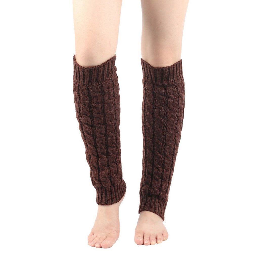 Women Knit Leg Warmers Winter Warm Long Boot Socks Coffee