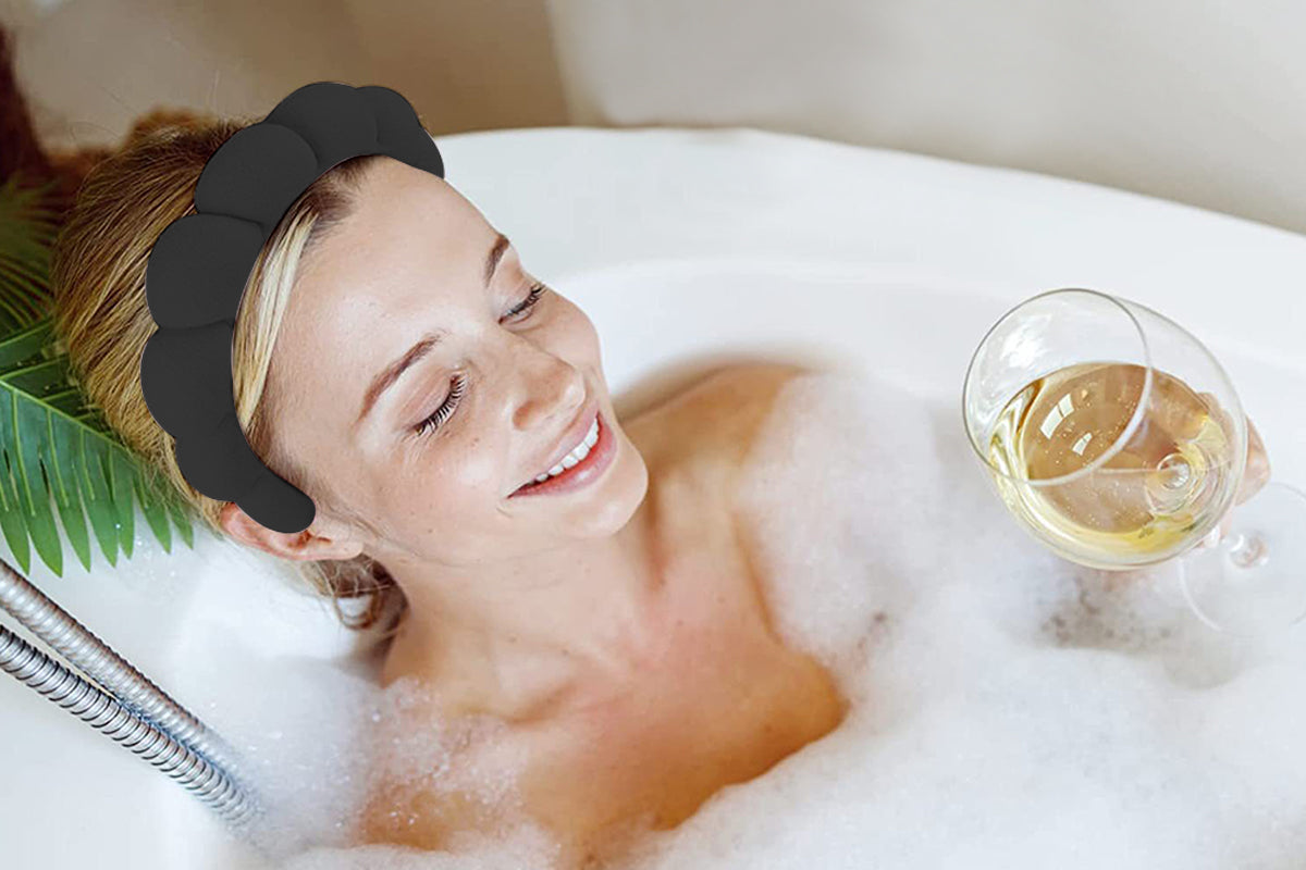 Women Mimi And Co Spa Headband Sponge Washing Face Makeup Skincare Puffy Headband-Black