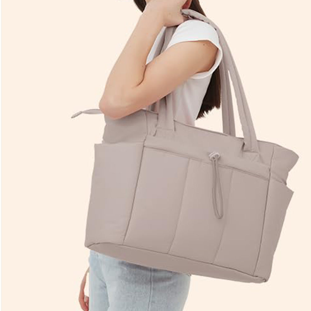 A stylish and functional women¡¯ s tote bag with a built-in cup holder and luggage sleeve, perfect for travel, work, gym, or daily use.