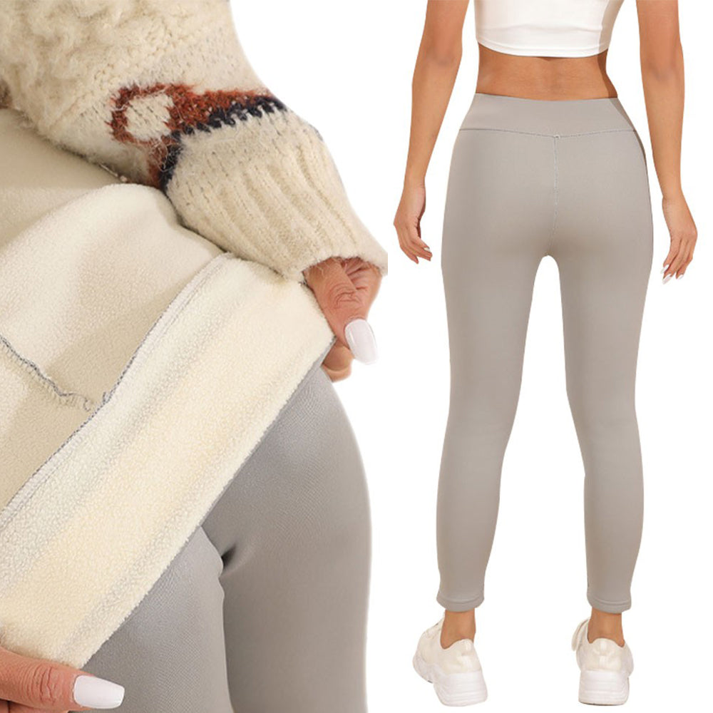 Women Thick Lined Leggings Winter Thermal Leggings High Waisted Stretchy Pants Light Grey